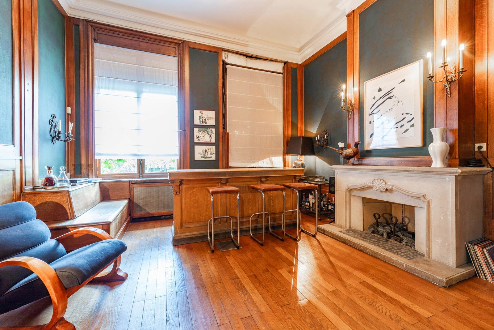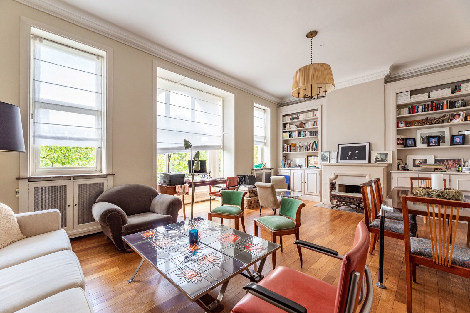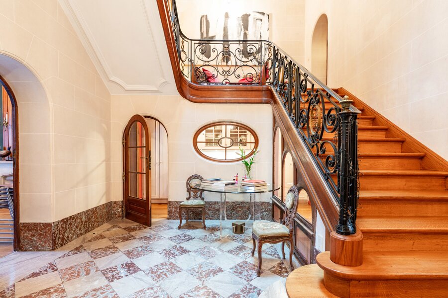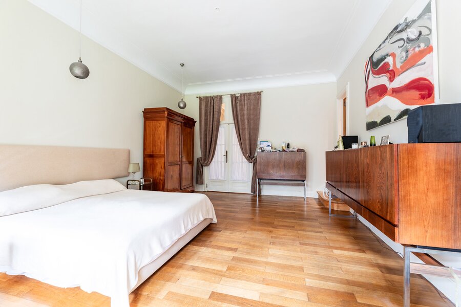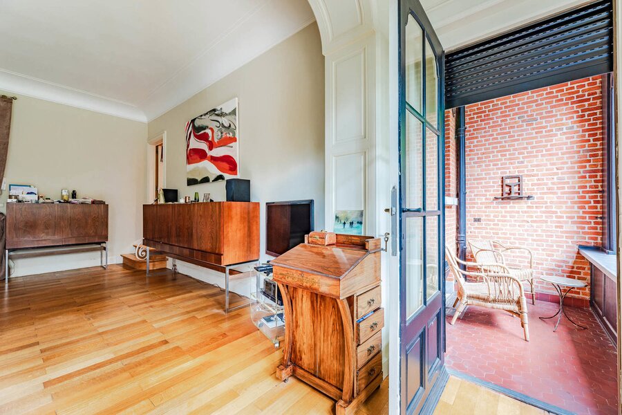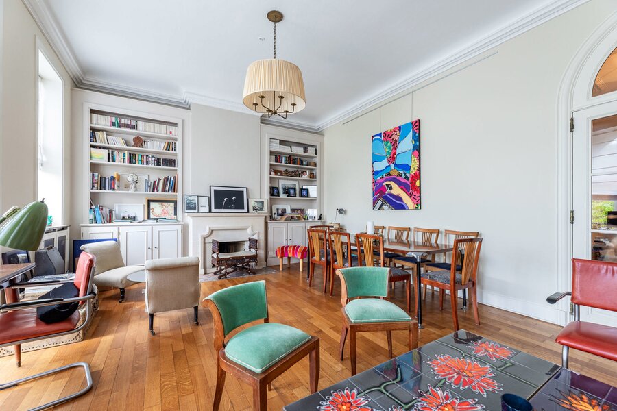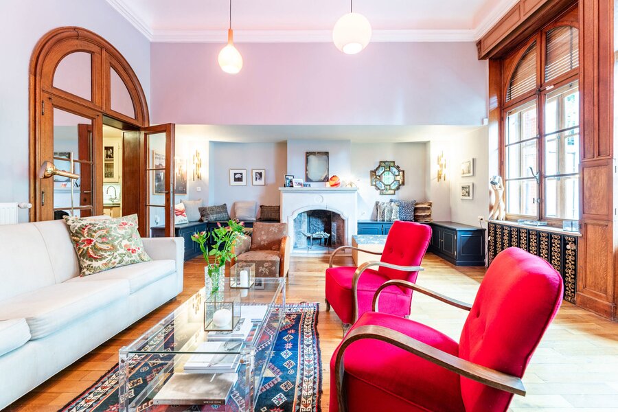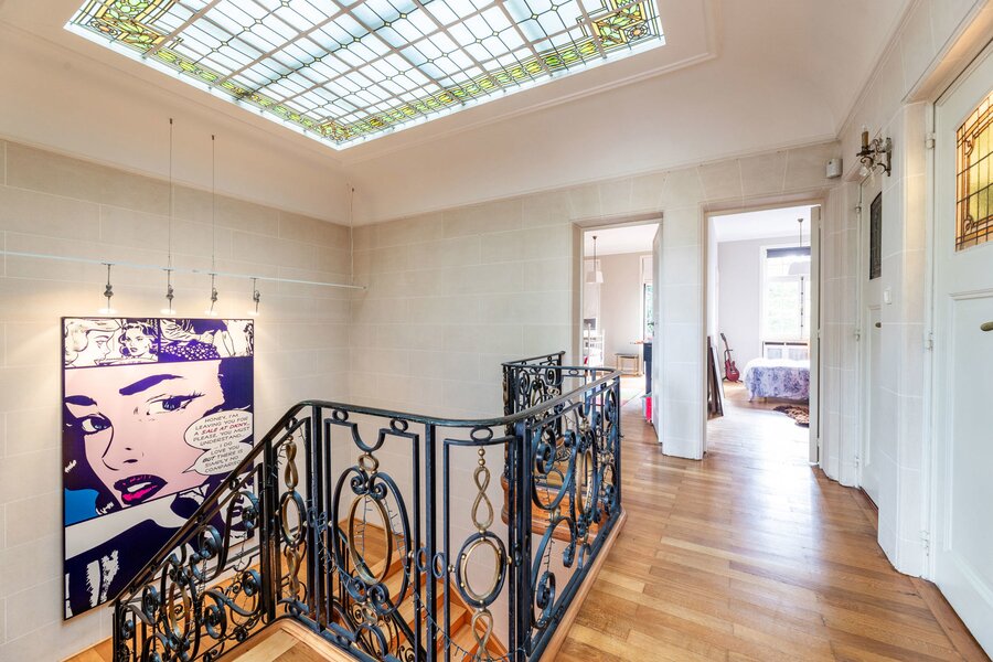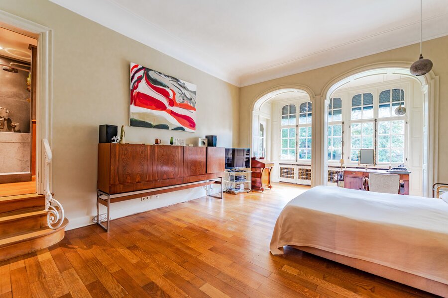 Very well located a stone's throw from the European Institutions on the beautiful Place de Jamblinne de Meux, a charming mansion in very good condition that has retained all its period features (parquet flooring, high moulded ceilings, magnificent staircase). Past the entrance hall, there is a first reception room overlooking the garden and a large office (or dining room). The eat-in kitchen is in the semi-basement with direct access to the garden. On the first floor there is a second living room (or large office) and the master suite, while the upper floors have several bedrooms and bathrooms.