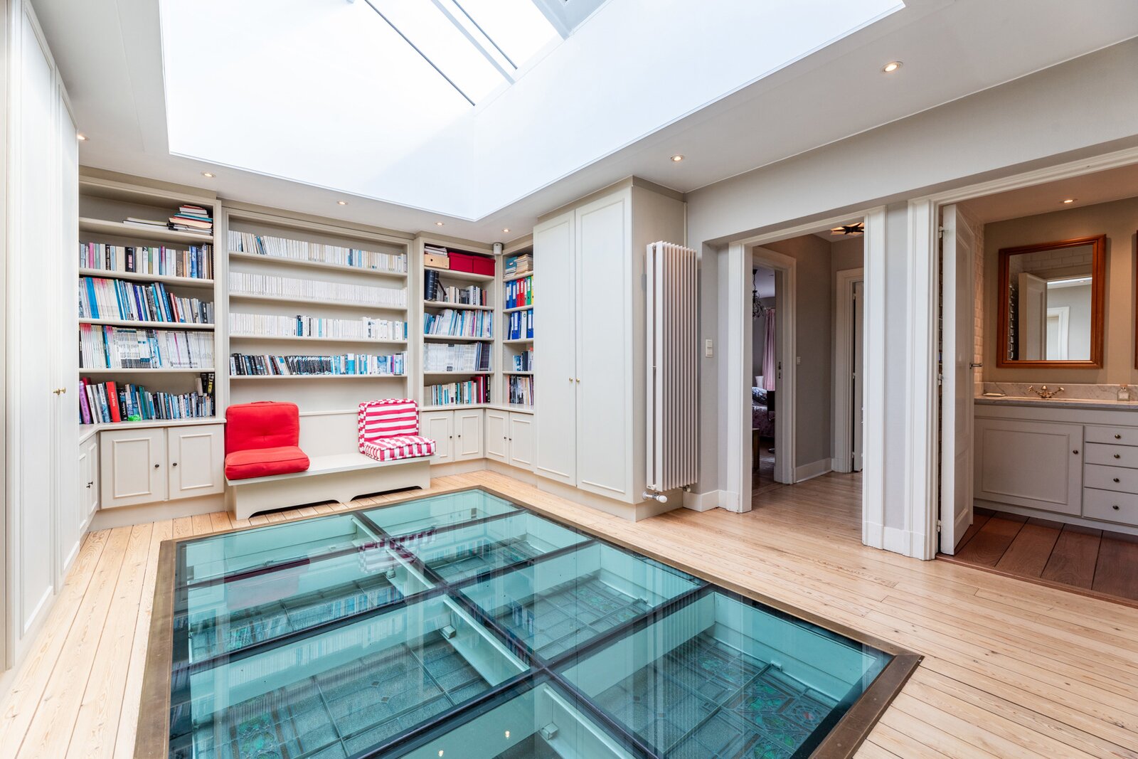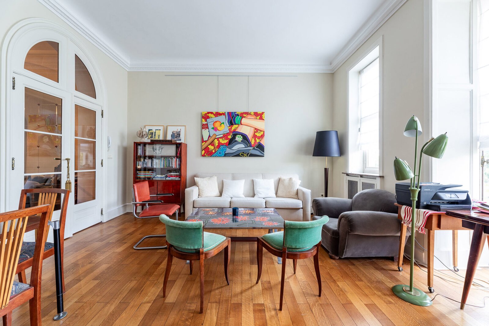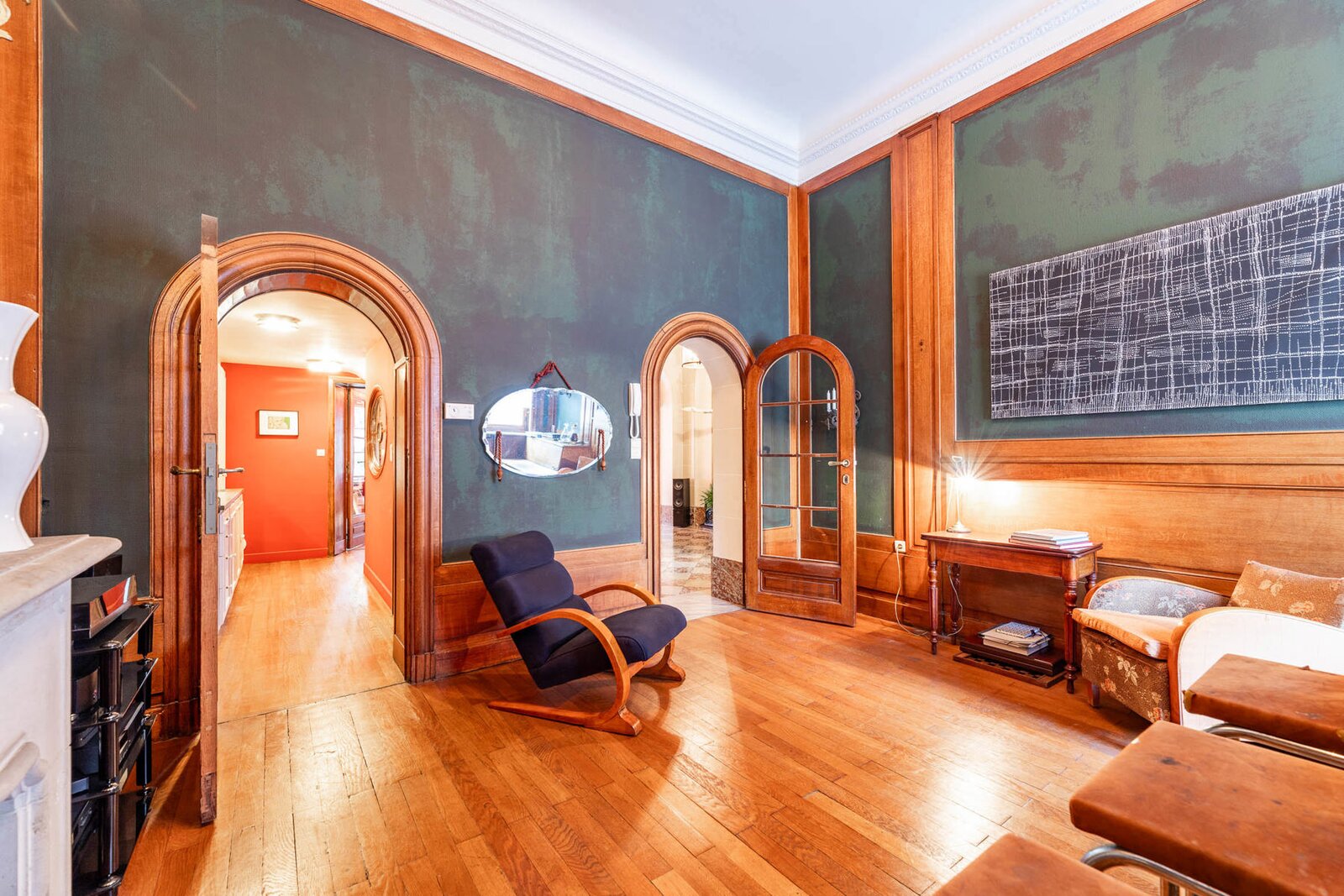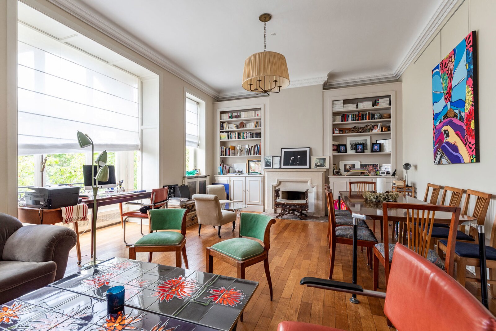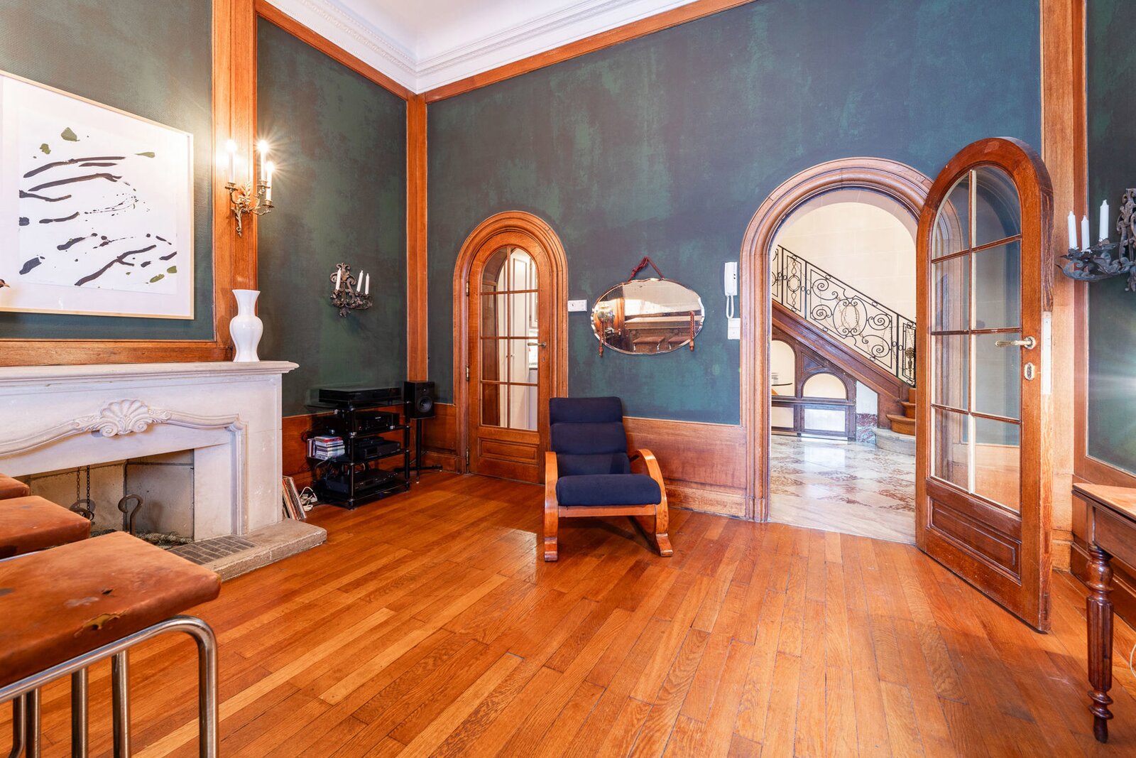 Very well located a stone's throw from the European Institutions on the beautiful Place de Jamblinne de Meux, a charming mansion in very good condition that has retained all its period features (parquet flooring, high moulded ceilings, magnificent staircase). Past the entrance hall, there is a first reception room overlooking the garden and a large office (or dining room). The eat-in kitchen is in the semi-basement with direct access to the garden. On the first floor there is a second living room (or large office) and the master suite, while the upper floors have several bedrooms and bathrooms.