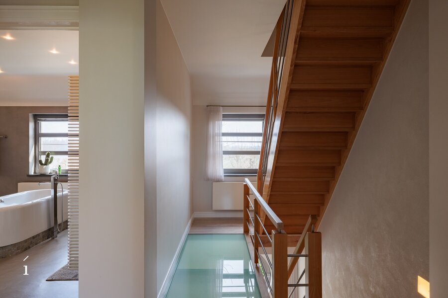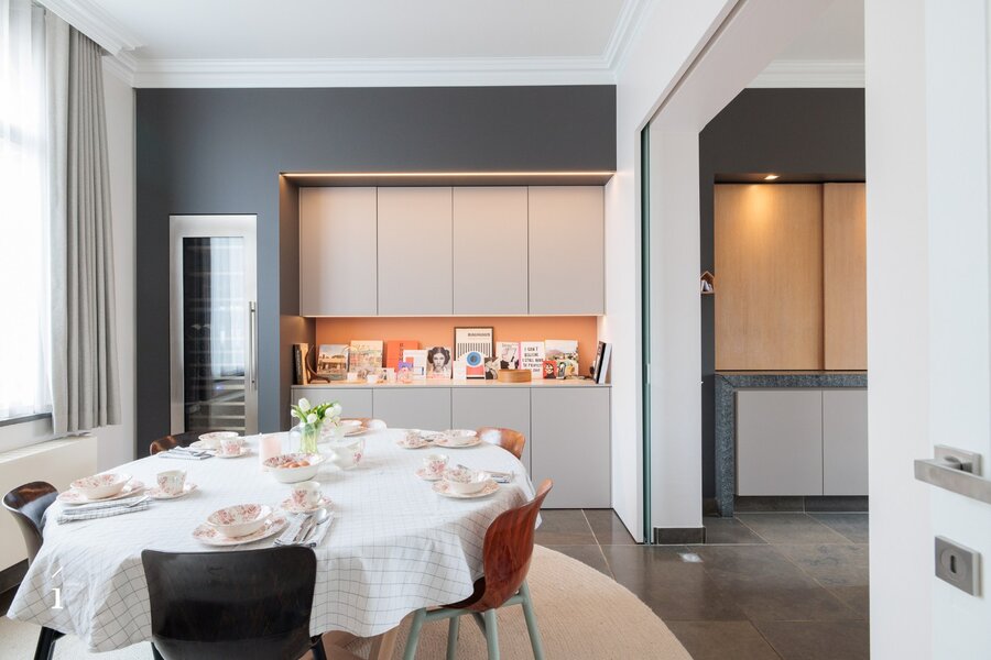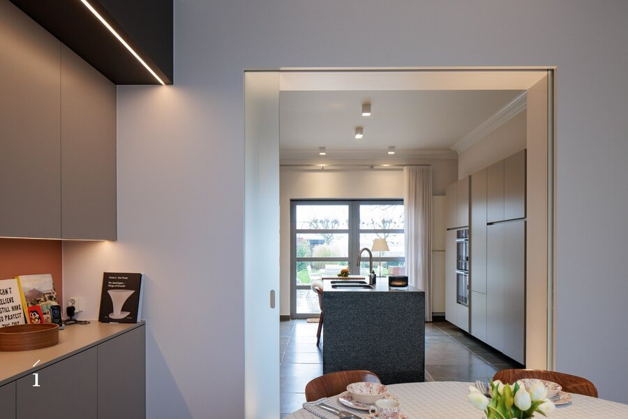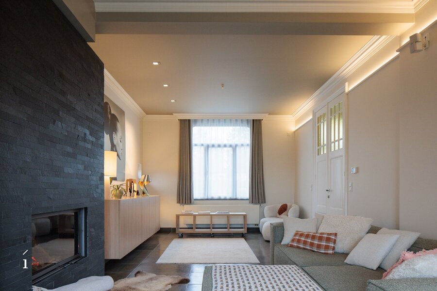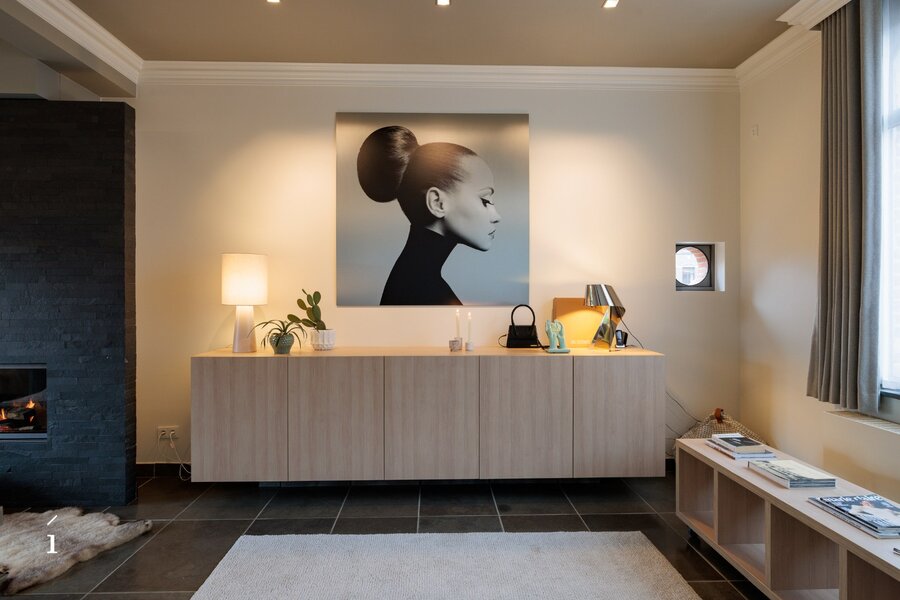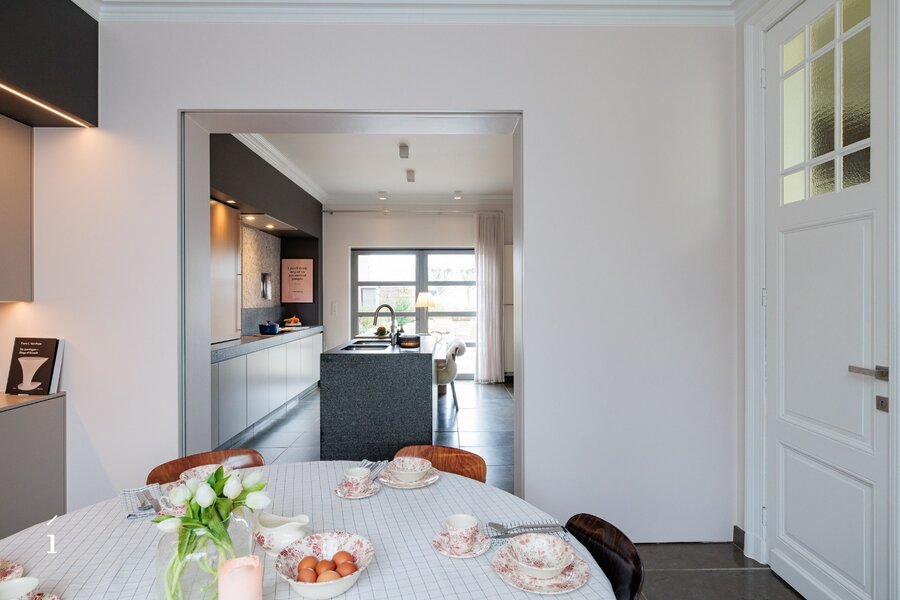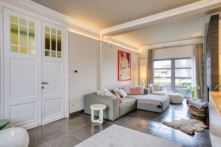 De statige inkomhal met originele paneeldeuren zet meteen de toon. Hoge plafonds, authentieke elementen en een warme materiaalkeuze creëren een sfeer van tijdloze klasse. De leefruimtes baden in het licht en bieden een prachtig zicht op de tuin.
