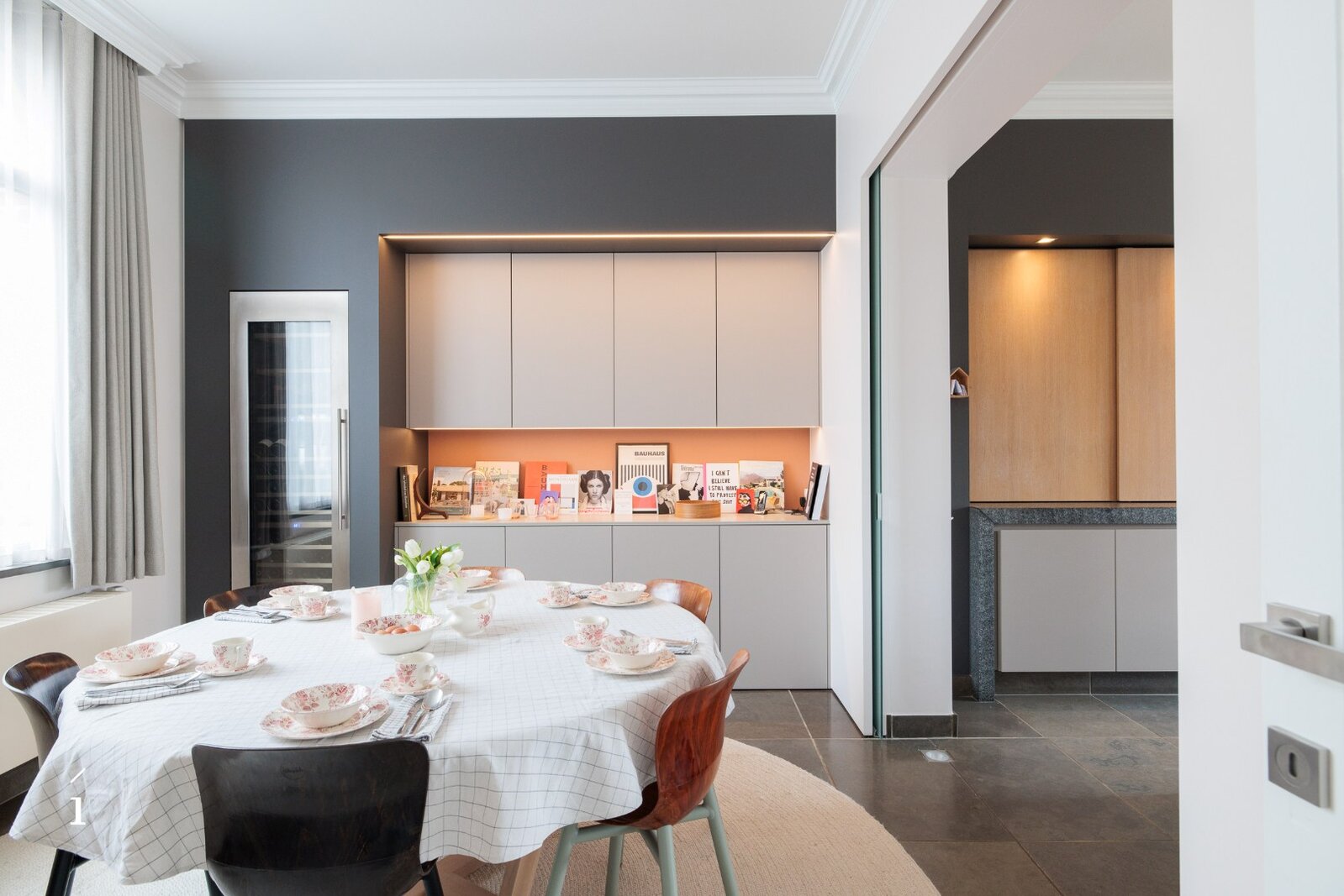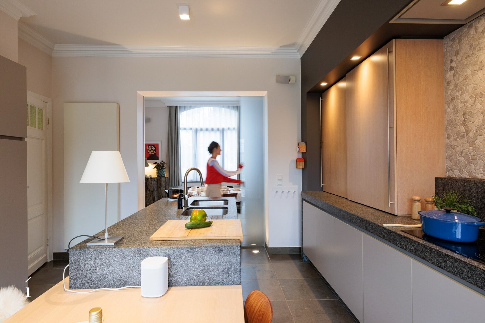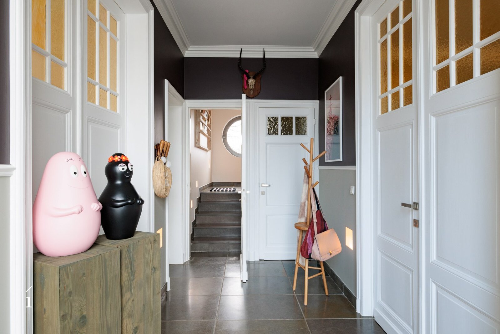 De statige inkomhal met originele paneeldeuren zet meteen de toon. Hoge plafonds, authentieke elementen en een warme materiaalkeuze creëren een sfeer van tijdloze klasse. De leefruimtes baden in het licht en bieden een prachtig zicht op de tuin.
