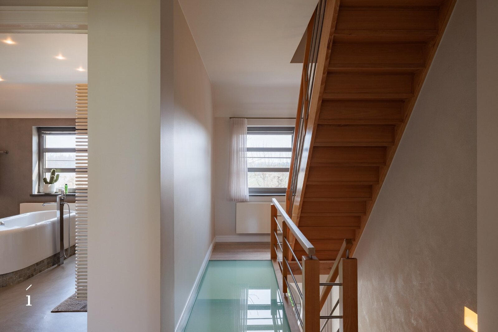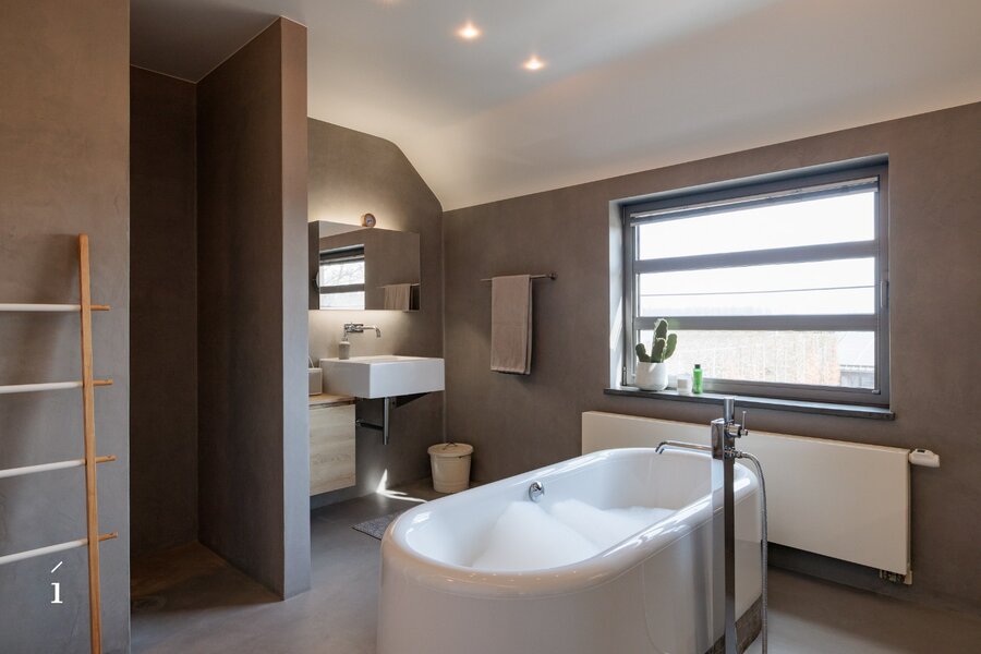 Op de eerste verdieping bevinden zich drie ruime slaapkamers, een dressing en een elegante badkamer met ligbad, inloopdouche en dubbele lavabo, aangevuld met een praktische wasruimte.