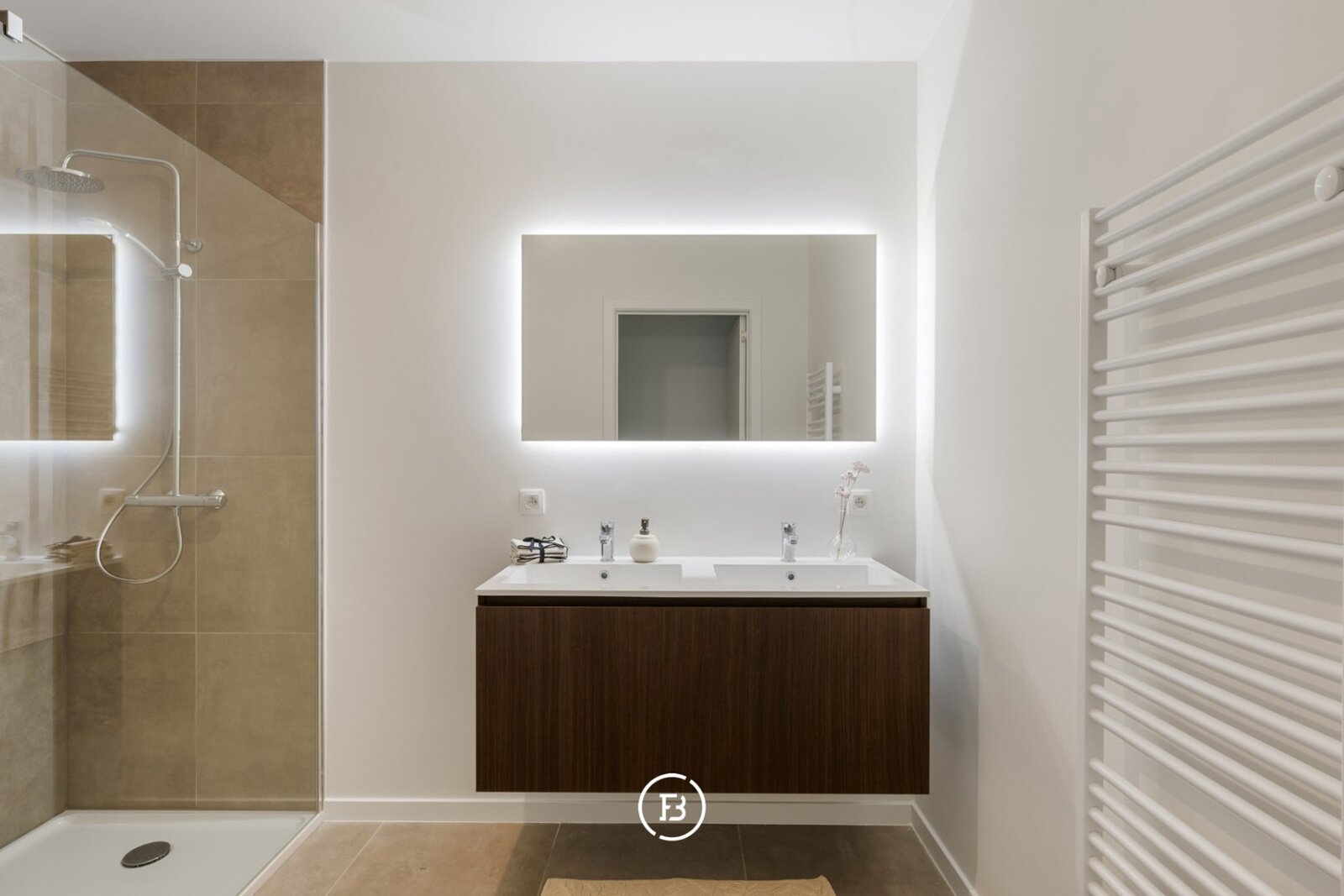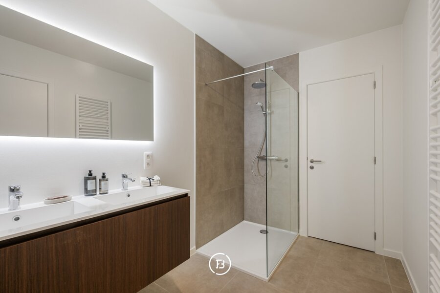 Het appartement beschikt over 3 volwaardige slaapkamers en 2 badkamers. De master bedroom heeft een ensuite badkamer met dubbele lavabo, ligbad, inloopdouche en een afzonderlijk toilet. Daarnaast is er ruimte voorzien voor een dressing die volledig naar eigen wens kan worden ingericht.