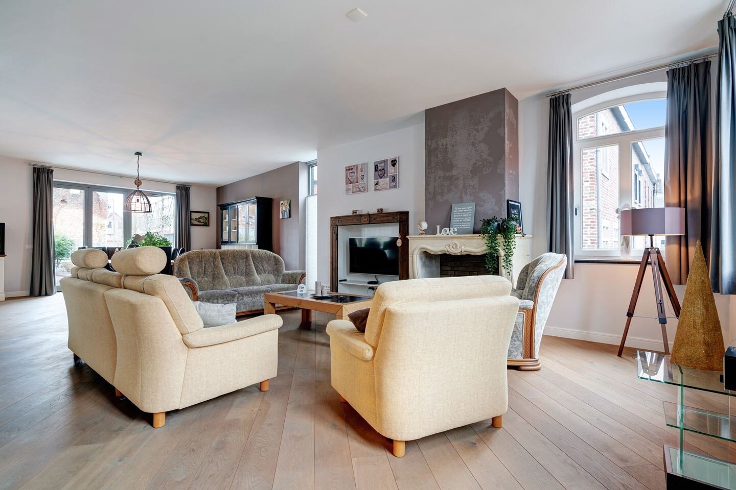 - De riante woonkamer heeft grote raampartijen en staat in verbinding met de keuken en tuin;
