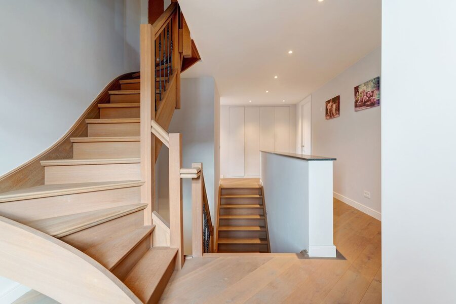 - De trap is op maat gemaakt met eiken hout en smeedijzer;