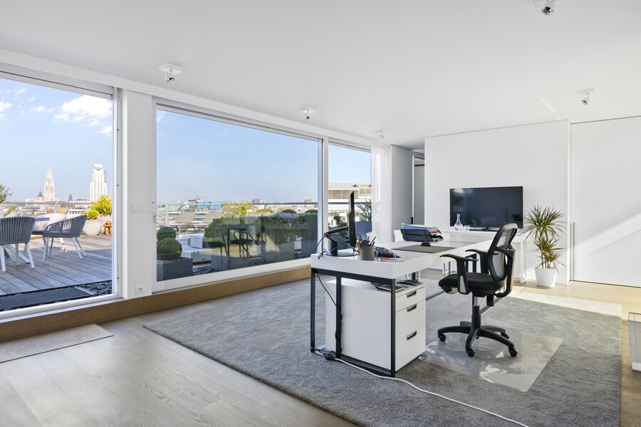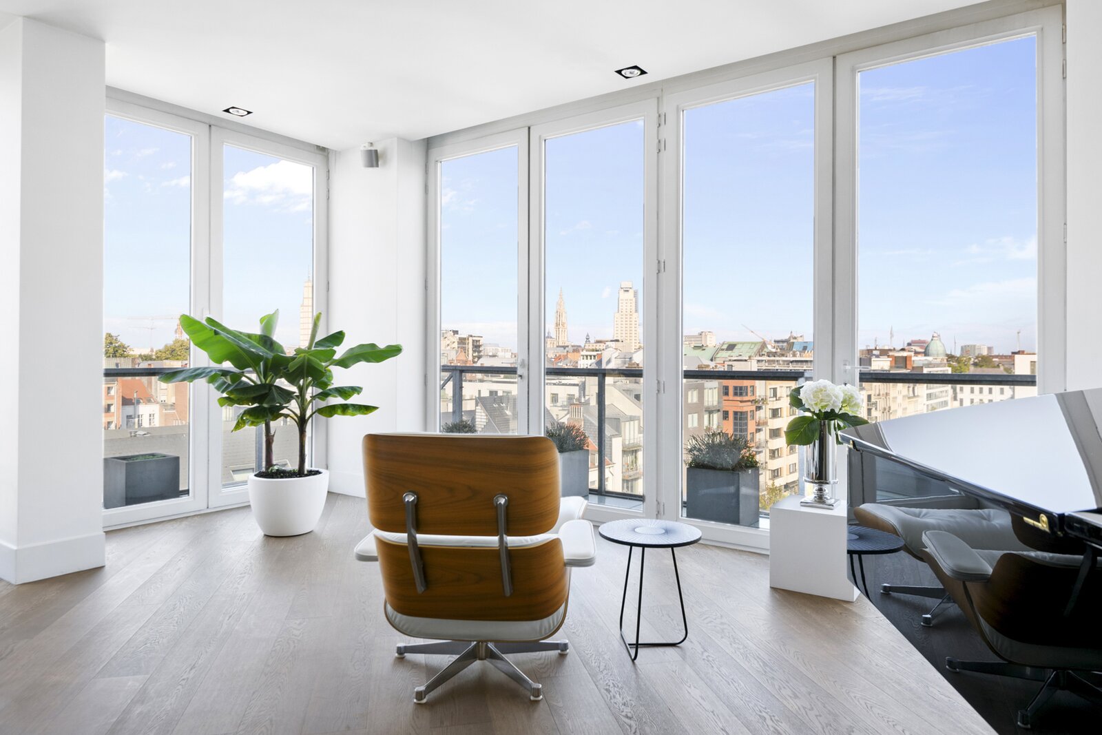 Located in the heart of Antwerp city centre, this exclusive and luxurious duplex penthouse is a real feast for the eyes. Within walking distance of the famous Schuttershofstraat with its elegant shops and the Stadsschouwburg for optimal entertainment. Due to this ideal location, you can be in and out of the city in no time.