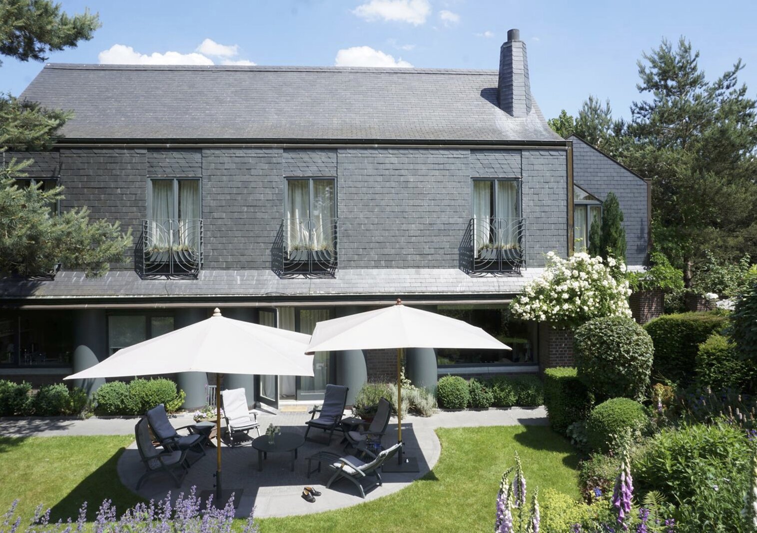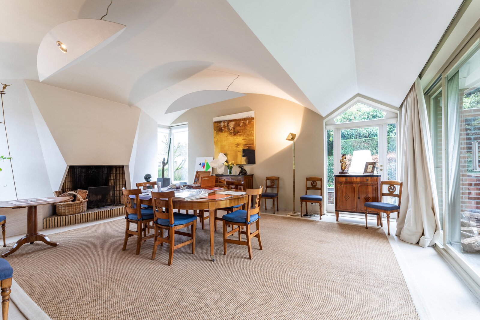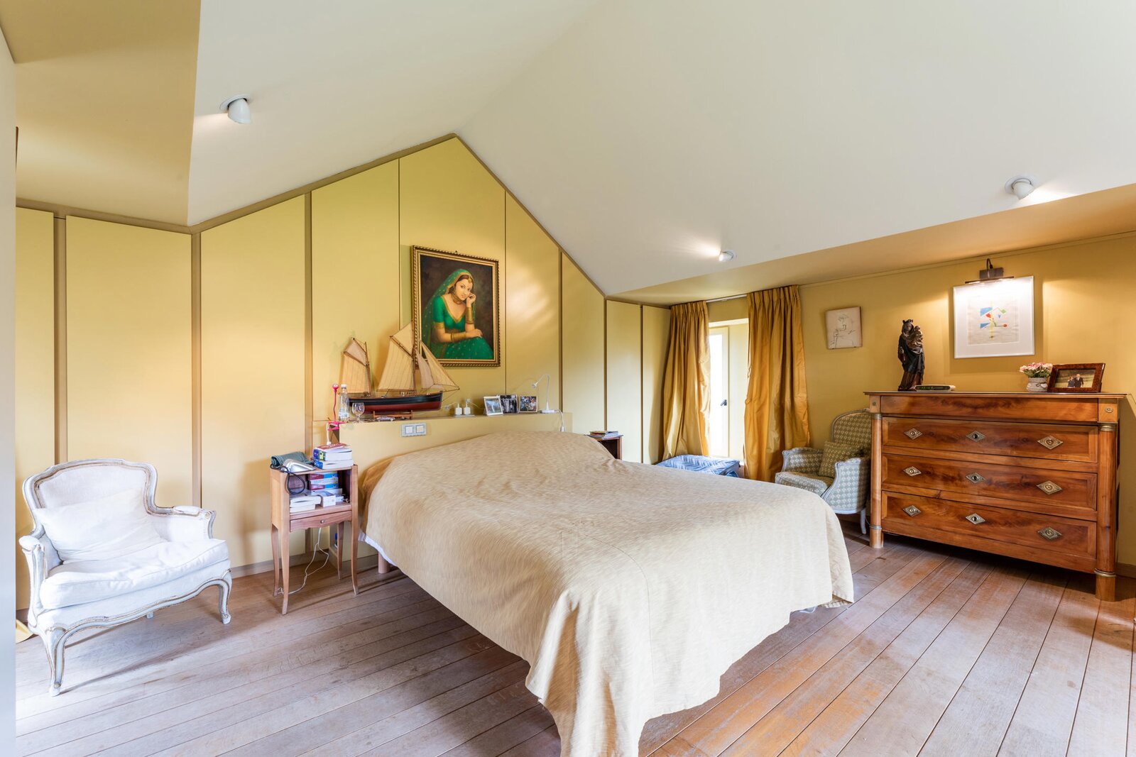 With approximately 730 m² of living space, this villa opens up to a spacious entrance hall. The bright living room with a fireplace and the dining room create a cozy atmosphere. The fully-equipped kitchen caters to all needs. A large master suite with a bathroom, office, and dressing room, along with another suite and two large duplex bedrooms with an office, offer comfortable living spaces. The south-facing landscaped garden, designed by Wiertz, adds a soothing touch to the property.