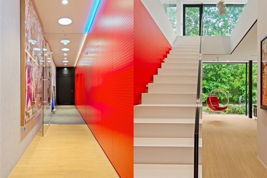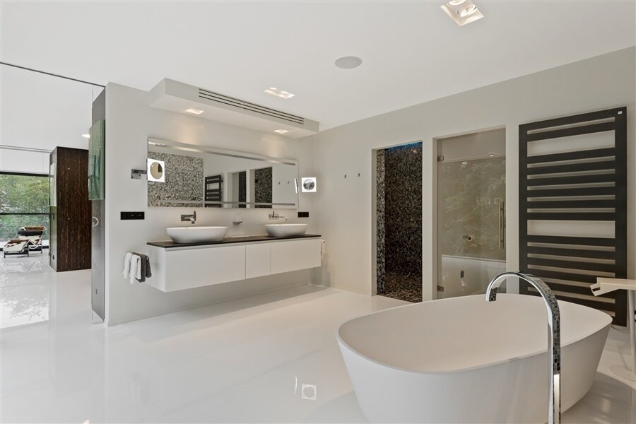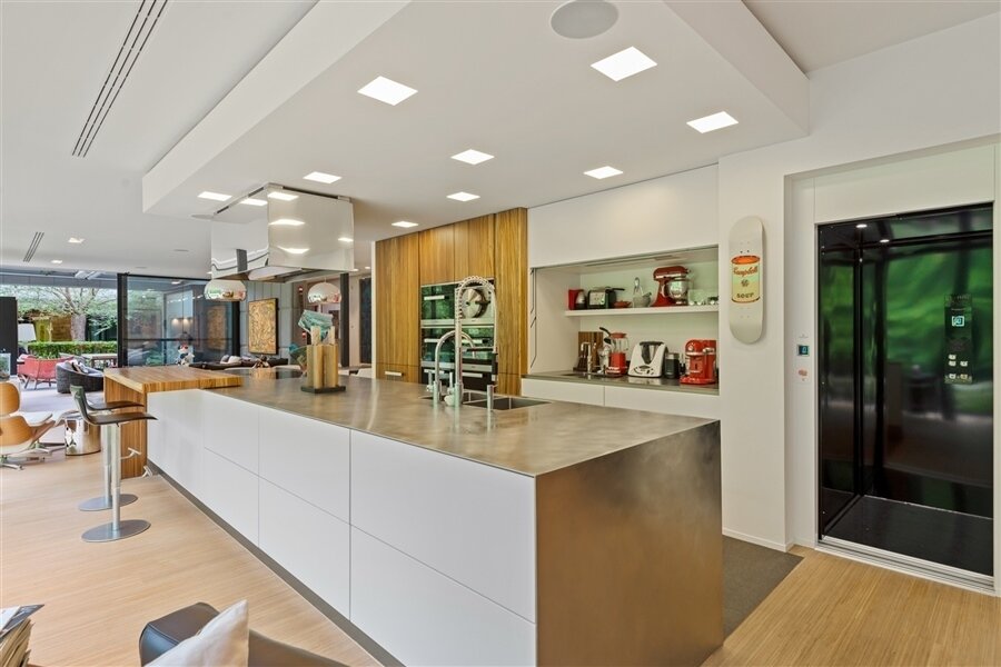 The main house on the canal is connected to a second villa with additional suites and a unique wellness and fitness area, both with their own lift.
