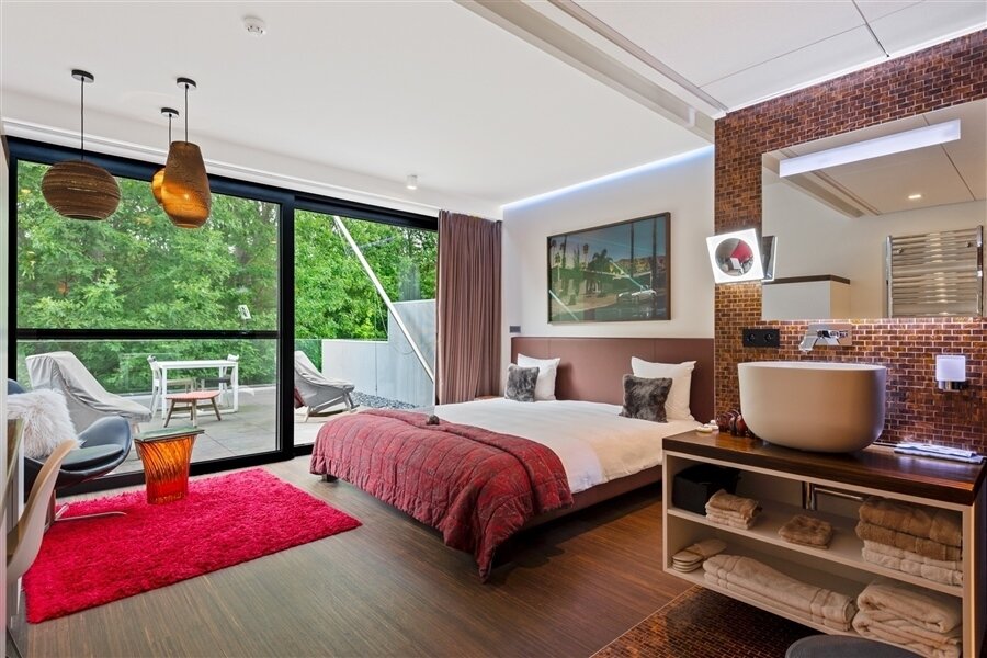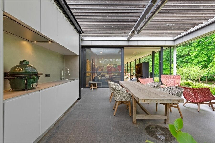 This property consists of 2 entities connected to each other, both giving out via generous terraces onto the uniquely landscaped gardens and forest.