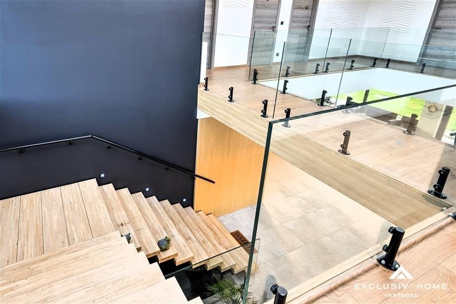 This openness is also reflected throughout the home. The tastefully decorated living spaces create a cozy and comfortable living feeling. The house has 6 bedrooms with ensuite bathroom, a fashionable open kitchen, huge open living room, office, technical areas, etc... The buildings have a full basement, including an underground garage for 4 cars.