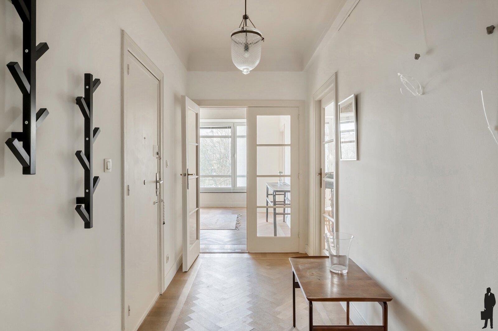 De leefruimte baadt in het licht en geniet van een breed en open uitzicht op het groen, zowel aan de voor- als achterzijde. De warme en stijlvolle sfeer wordt versterkt door het authentieke, karaktervolle parket, dat perfect aansluit bij de charme van het appartement. De volledig uitgeruste keuken sluit hier naadloos op aan en biedt alle comfort voor dagelijks gebruik.
