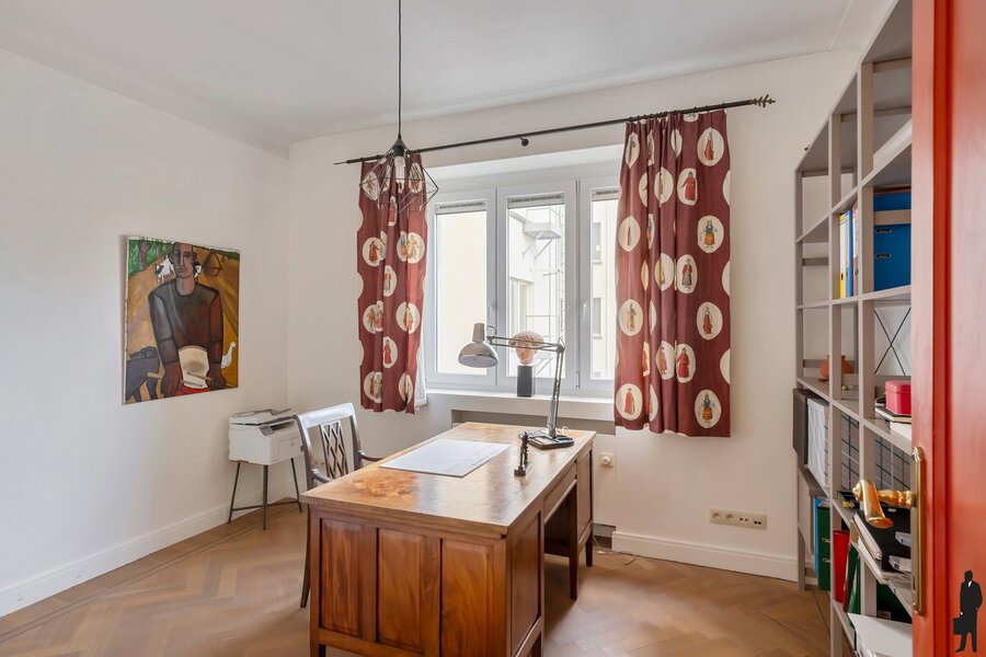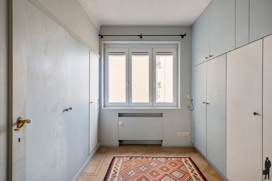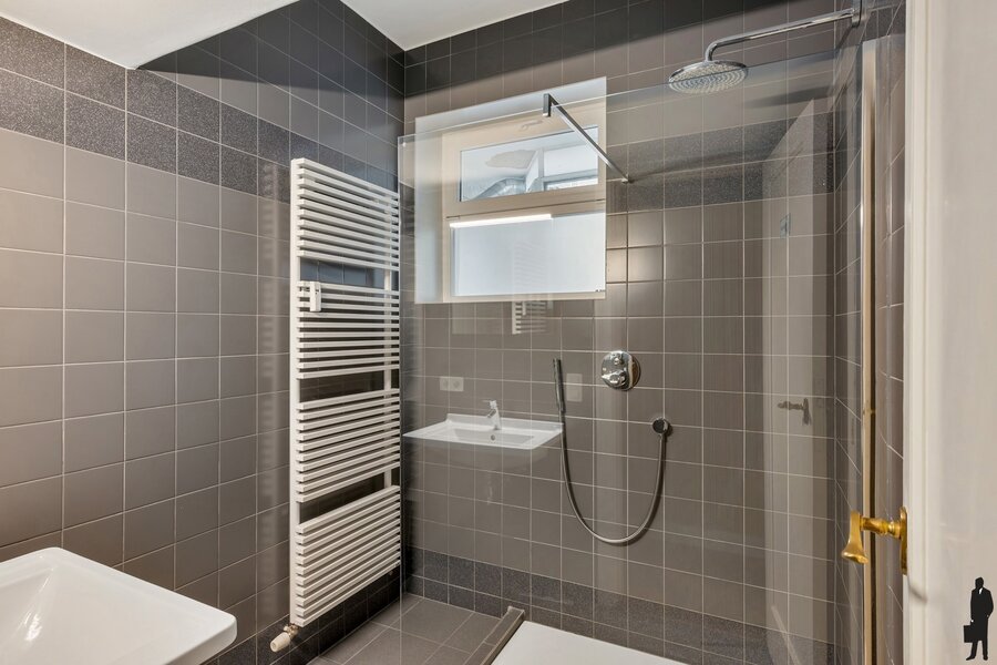 Het appartement beschikt over drie volwaardige slaapkamers en twee badkamers/douchekamers, wat het ideaal maakt voor gezinnen of wie graag ruim woont. Een klein terras laat toe om in alle rust te genieten van de groene omgeving. Daarnaast is er een private kelderberging en toegang tot een aangename gemeenschappelijke tuin, een echte troef in de stad.