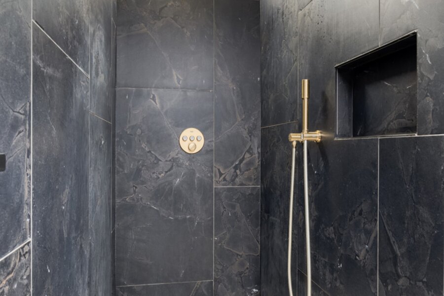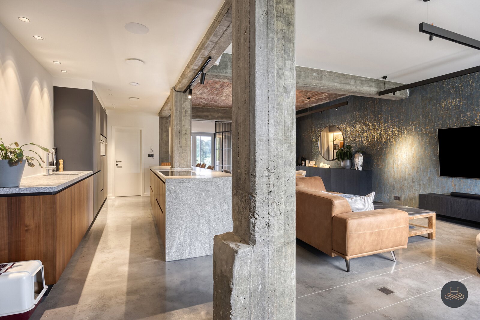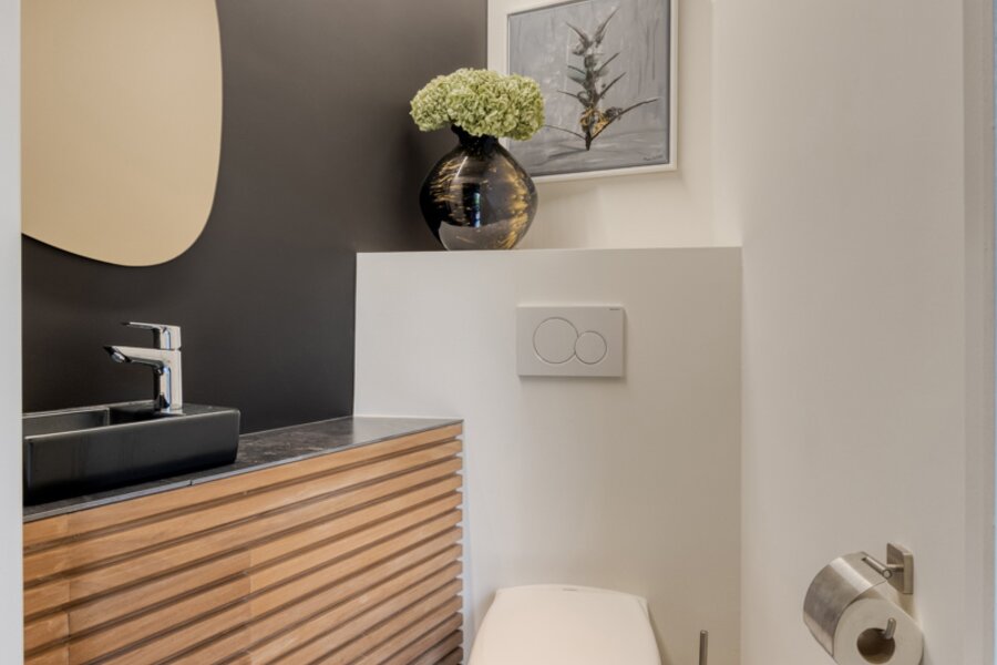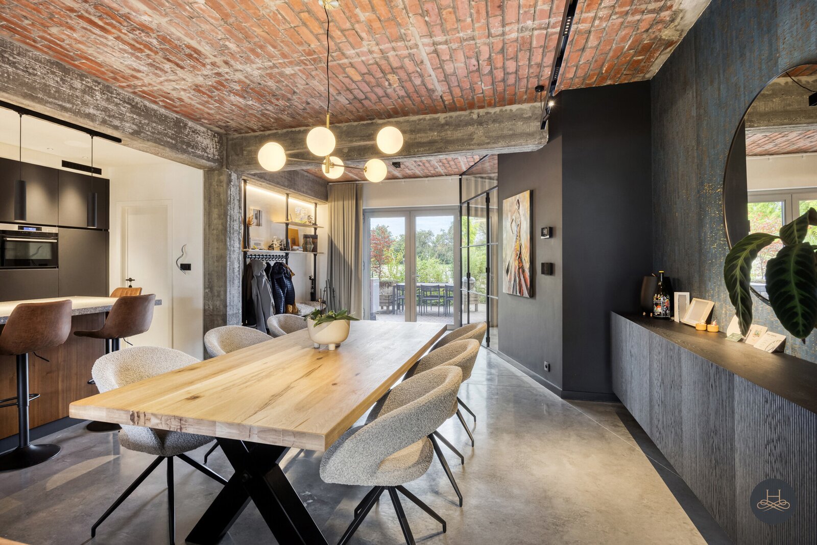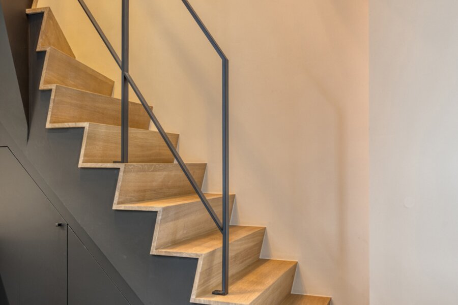 Het appartement werd in 2023 volledig gerenoveerd en afgewerkt met hoogwaardige materialen en oog voor detail. De open benedenverdieping ademt een loftgevoel en verbindt wonen en koken één mooi geheel. De ruime in notelarenhout uitgevoerde designkeuken van Dovy met granieten blad en hoogwaardige toestellen is een echte blikvanger.