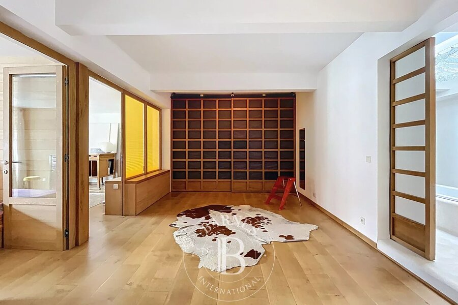 The night space, accessible from a vast hall, includes four bedrooms, a dressing room and a bathroom with an original design.