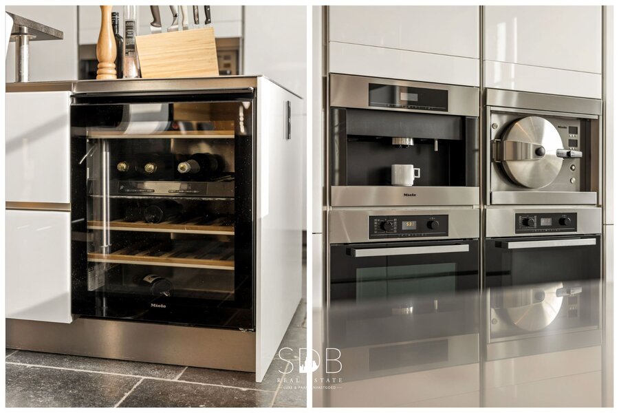 Naast de traditionele toestellen is er ook een inbouw koffiezetapparaat, 2 combi-ovens en een stoomoven. Tevens een wijnklimaatkast als must voor de wijnliefhebber.