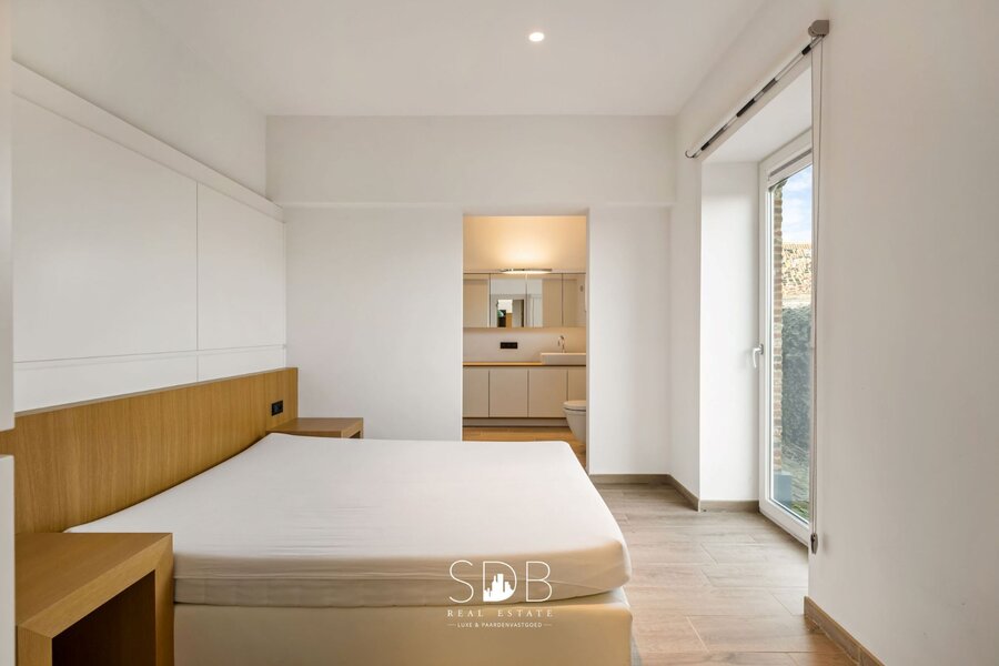De 2de slaapkamer straalt karakter uit met haar zwart accent en beschikt over een dressing. De aansluitende badkamer beschikt over een dubbel lavabomeubel, een bad, een inloopdouche, een bidet en een toilet. Getypeerd door haar sfeervolle, luxueuze uitstraling.