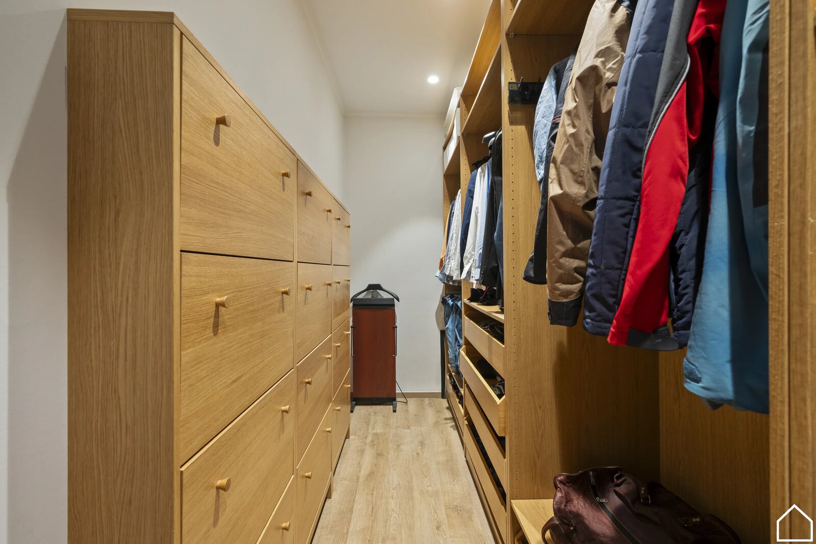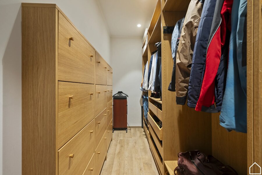 Hier vindt u twee slaapkamers, elk met een eigen dressing. De badkamer is uitgerust met een douchecel, lavabomeubel, handdoekdroger en toilet.