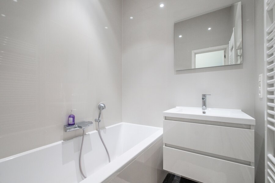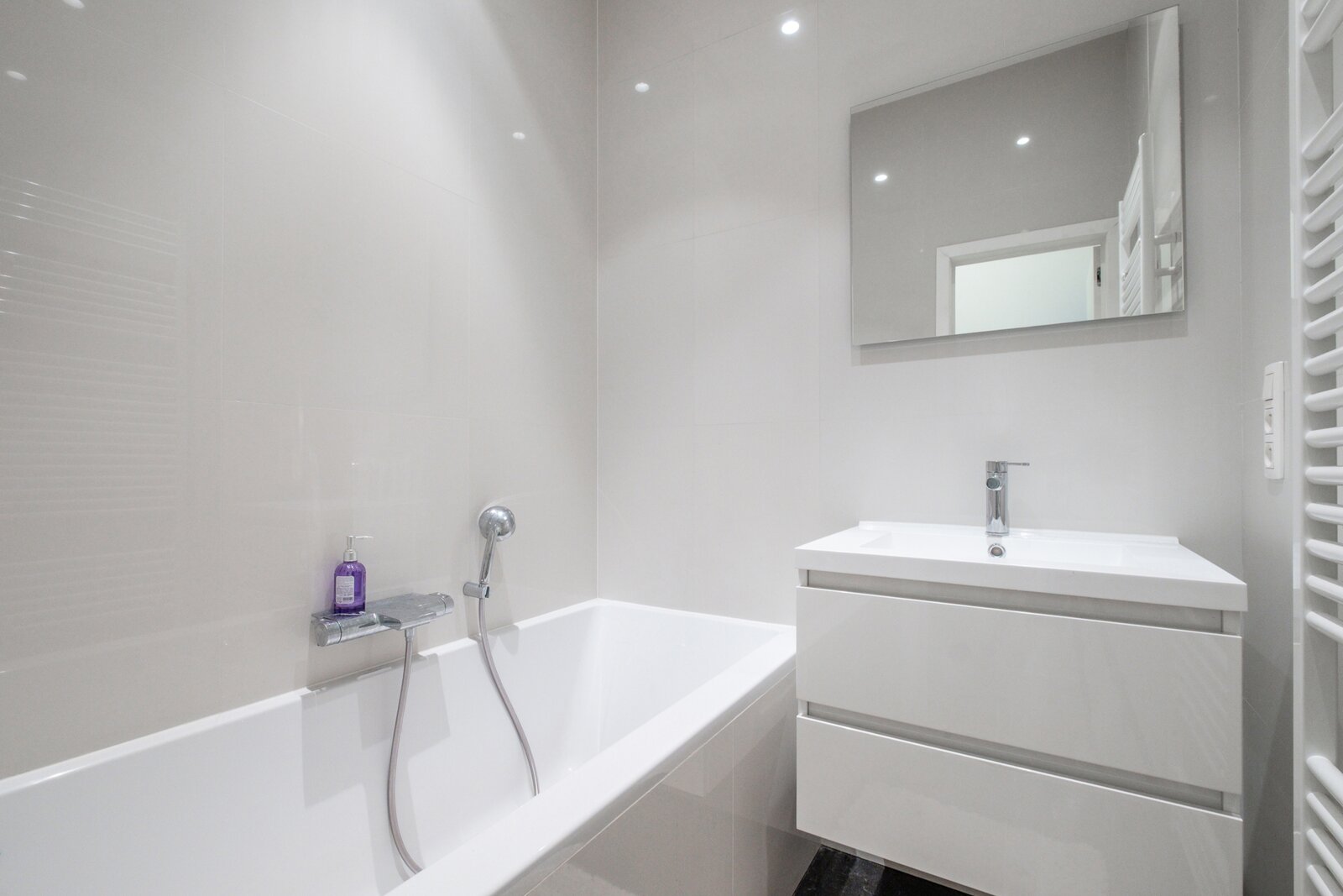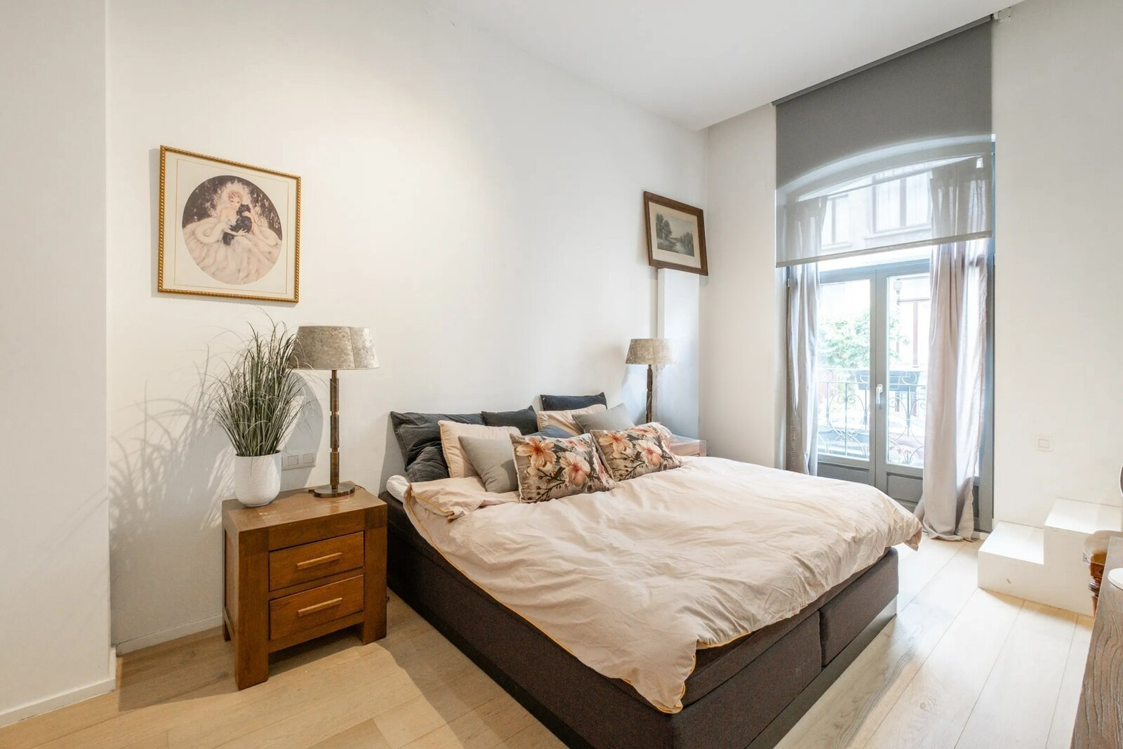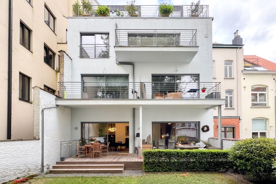 Between Place du Chatelain and Place Brugmann, magnificent ground floor of ± 135 m² in a renovated building. It is composed as follows: Entrance hall of ± 8.5 m², day hall serving washbasin and guest toilet, bright living room of ± 40 m² opening onto terrace of ± 35 m² and wooded garden of ± 115 m², fully equipped kitchen (bulthaup) of ± 9 m², night hall distributing Master bedroom of ± 23 m² with dressing room and adjoining bathroom, second bedroom of ± 12 m², shower room and third bedroom/office of ± 15 m² with adjoining shower room. Also: Complete renovation in 2017, double glazing, intercom, secure door, electrical certificate, individual gas boiler, cellar. PEB D-. To be discovered without further delay!