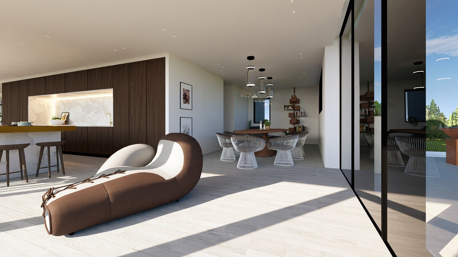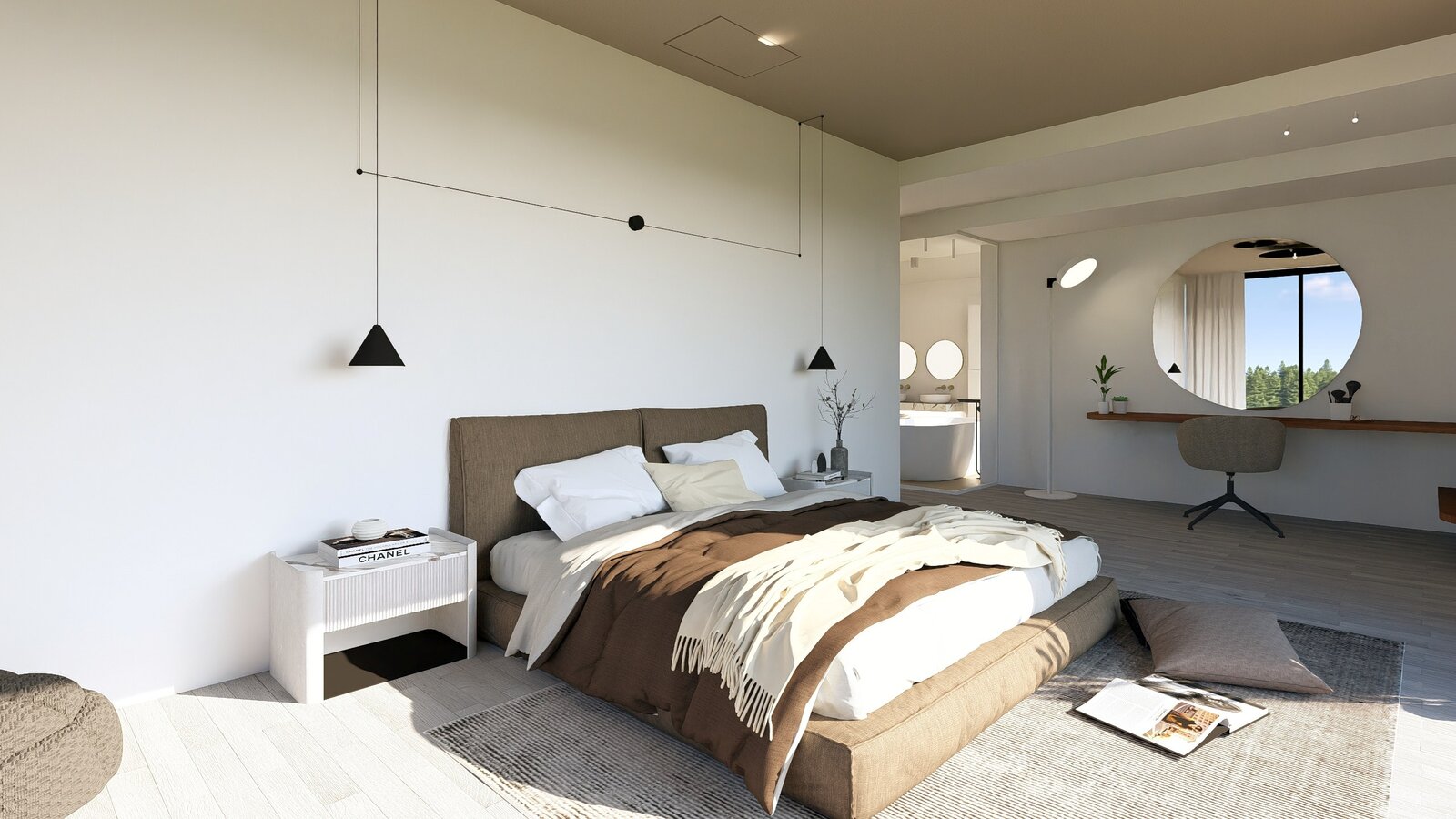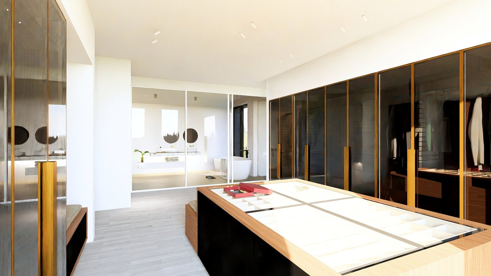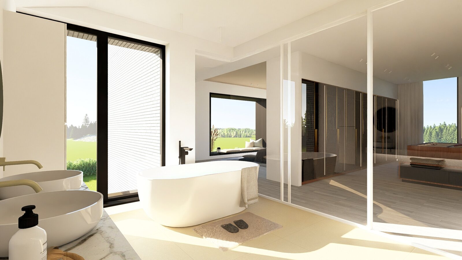 Op de verdieping vindt u 4 slaapkamers, elk met een eigen badkamer, waaronder de master van 25 m² met een dressing van 28 m². De eerste verdieping heeft 4 toiletten.