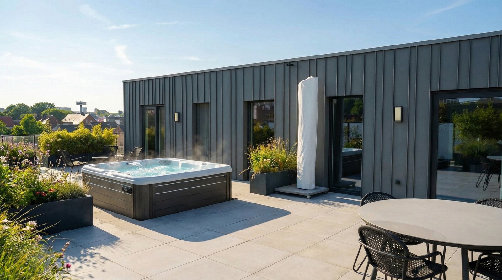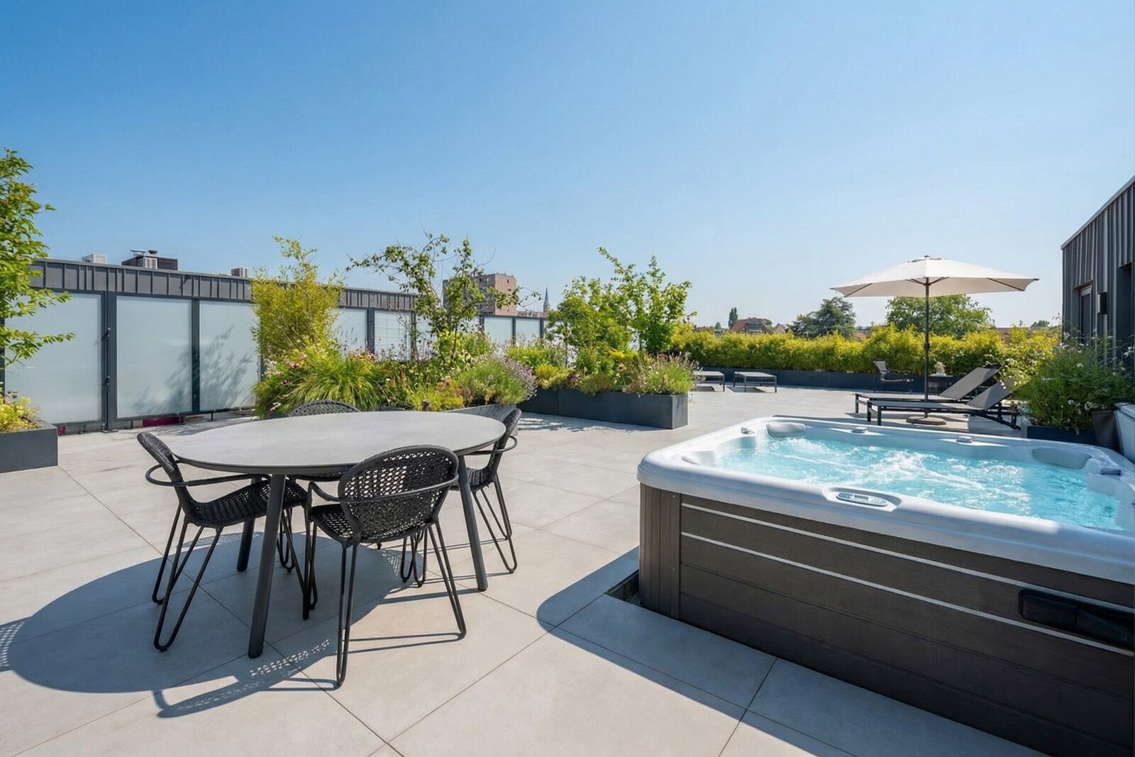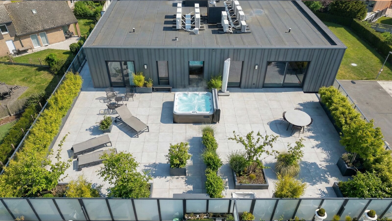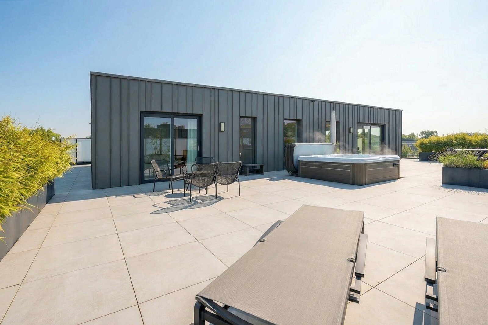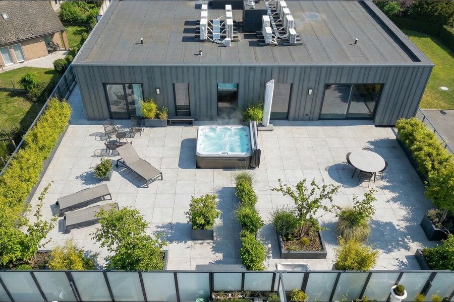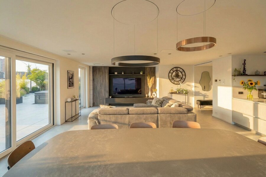 The entire living area opens directly onto an exceptional terrace of over 200 m², a true extension of the living space, perfect for enjoying fine weather to the fullest.