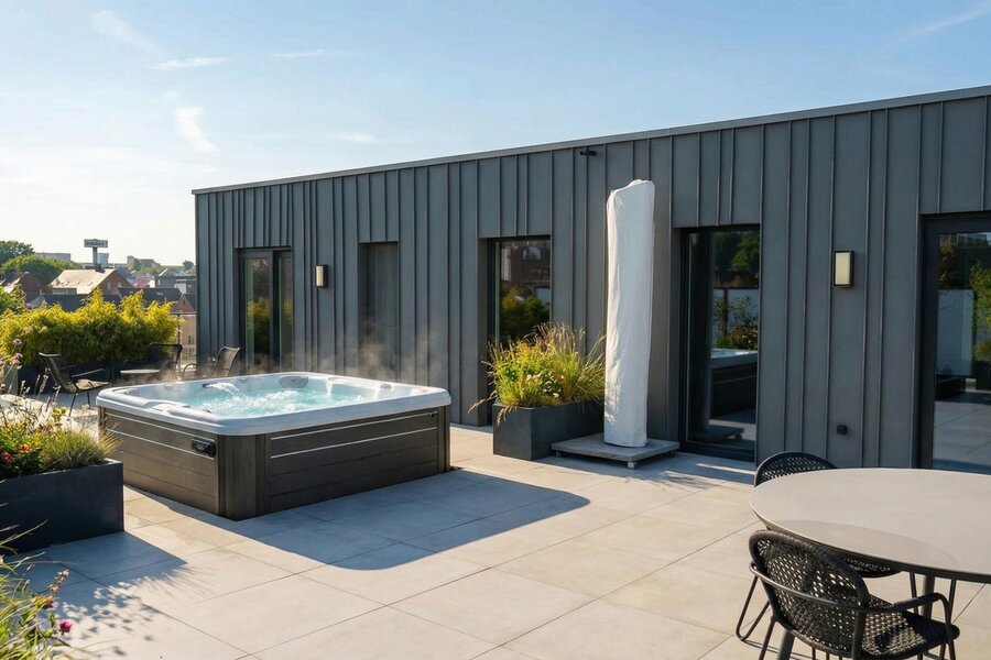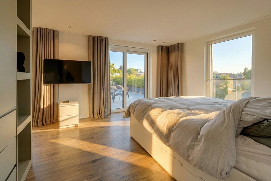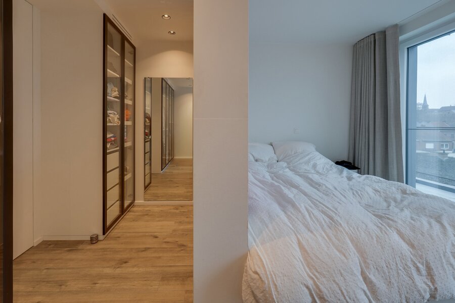 This penthouse enjoys a prime central location, in close proximity to all amenities such as schools, public transport, shops, main roads and the hospital. It is fitted with underfloor heating and an air-conditioning system ensuring optimal comfort all year round. High-performance PVC double-glazed windows, a reinforced entrance door, video intercom and a HI-FI system contribute to the comfort and security of the property. Interior finishes stand out with modern large-format tiles (120 x 120 cm) in the living areas and wood-effect tiling in the bedrooms. The residence features a lift, a mechanical ventilation system (VMC), recessed curtains, a compliant electrical installation and an excellent EPC rating.
