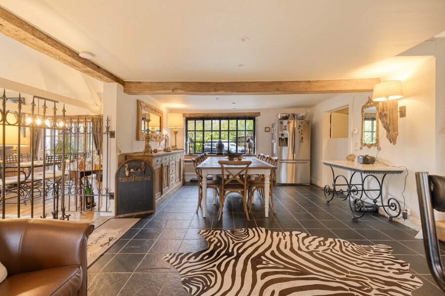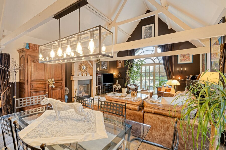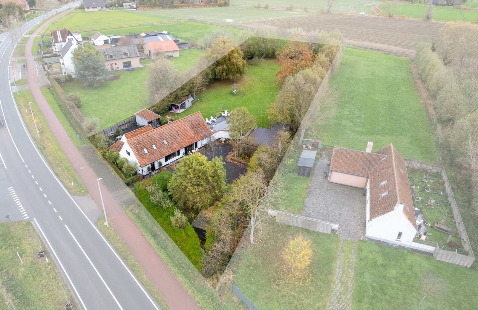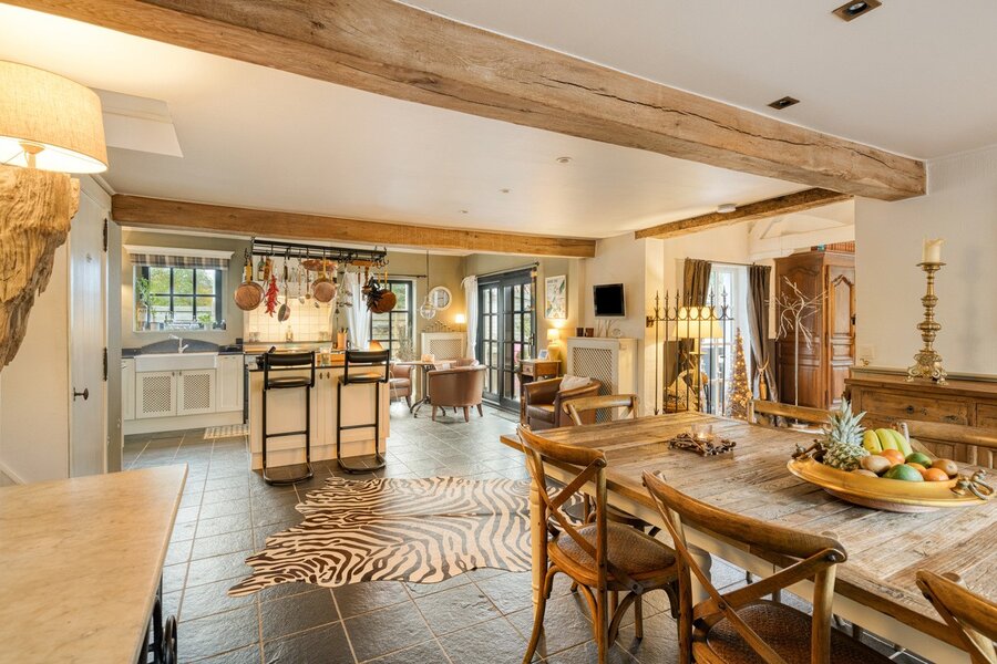 In een polderachtige, groene omgeving bevindt zich deze charmante landelijke woning te Dudzele, volledig en smaakvol gerenoveerd in 2006. Het resultaat is een unieke combinatie van authentieke materialen en hedendaagse luxe. Via de inkomhal met gastentoilet bereikt u de open leefkeuken met eetruimte, die naadloos overgaat in de ruime woonkamer met massief parket, open haard en hoge plafonds. Op het gelijkvloers bevindt zich tevens een multifunctionele kamer met inloopdouche. De volledige bovenverdieping doet dienst als master bedroom met eigen badkamer, ligbad, ingemaakte kasten en toilet. Het panoramische uitzicht op de prachtig aangelegde tuin met zwembad en zonneterras maakt van elke dag een vakantiegevoel. Het perceel van ca. 3.500 m² omvat verder een oprit, carport, tuinhuis en opbergruimte. Dit is wonen in pure rust en luxe, omringd door natuur.