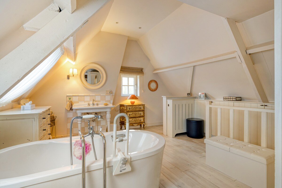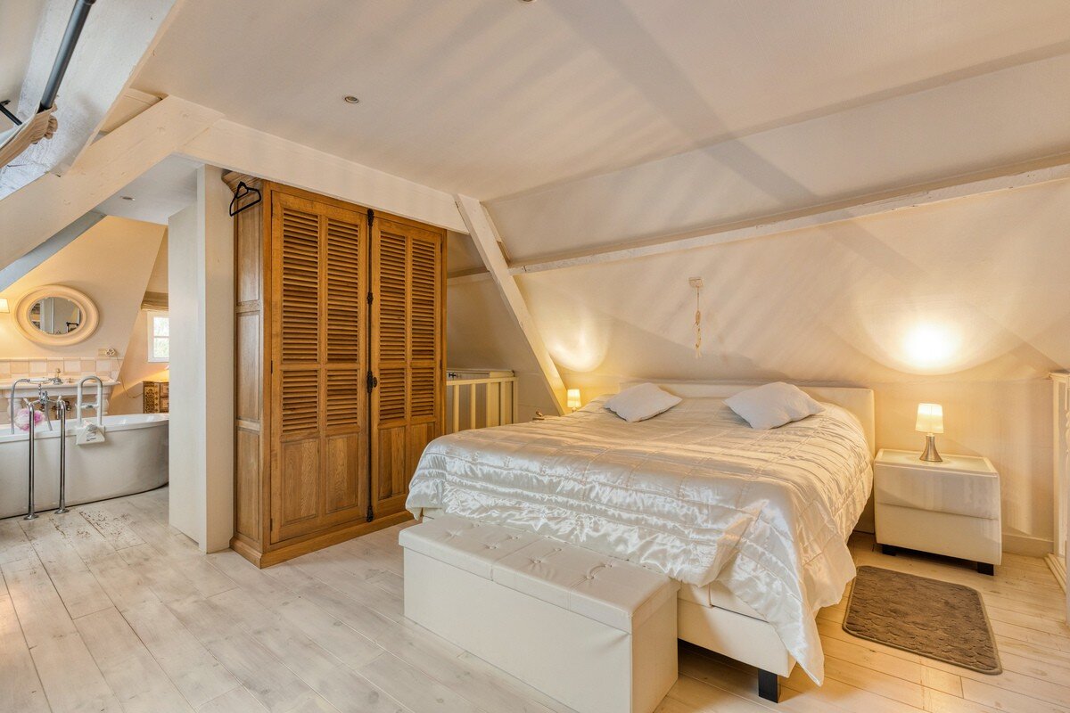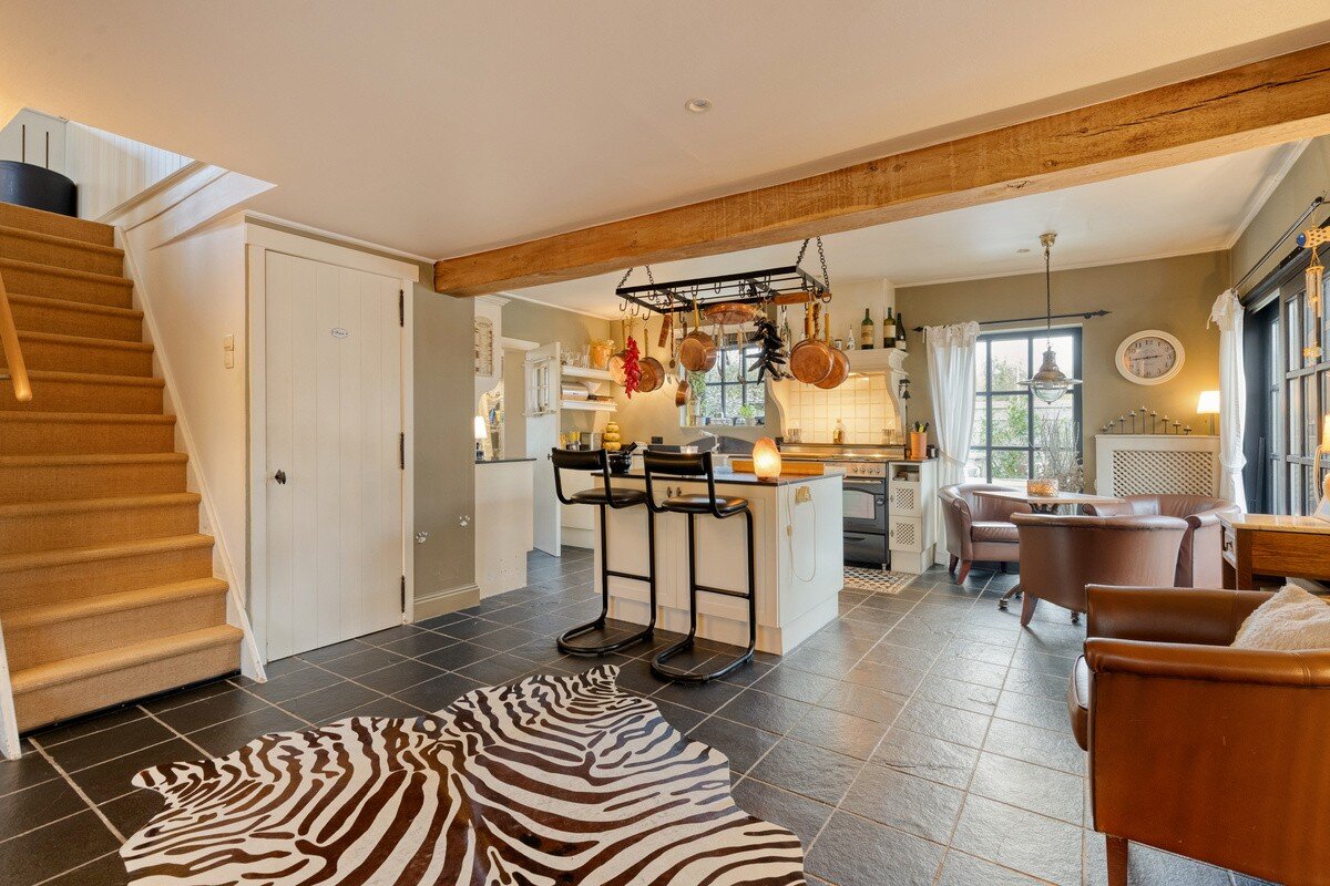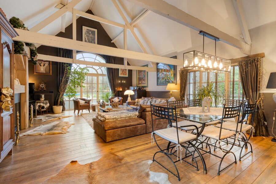 In een polderachtige, groene omgeving bevindt zich deze charmante landelijke woning te Dudzele, volledig en smaakvol gerenoveerd in 2006. Het resultaat is een unieke combinatie van authentieke materialen en hedendaagse luxe. Via de inkomhal met gastentoilet bereikt u de open leefkeuken met eetruimte, die naadloos overgaat in de ruime woonkamer met massief parket, open haard en hoge plafonds. Op het gelijkvloers bevindt zich tevens een multifunctionele kamer met inloopdouche. De volledige bovenverdieping doet dienst als master bedroom met eigen badkamer, ligbad, ingemaakte kasten en toilet. Het panoramische uitzicht op de prachtig aangelegde tuin met zwembad en zonneterras maakt van elke dag een vakantiegevoel. Het perceel van ca. 3.500 m² omvat verder een oprit, carport, tuinhuis en opbergruimte. Dit is wonen in pure rust en luxe, omringd door natuur.