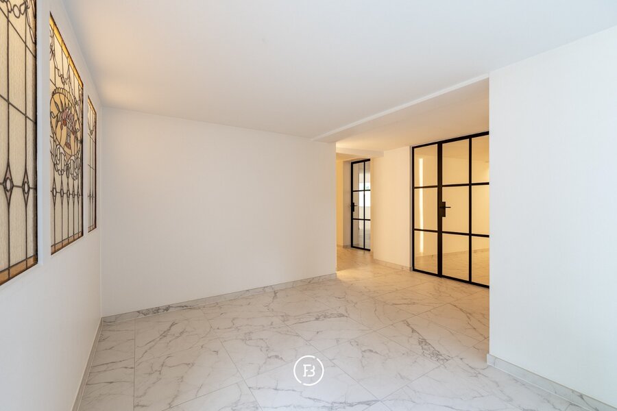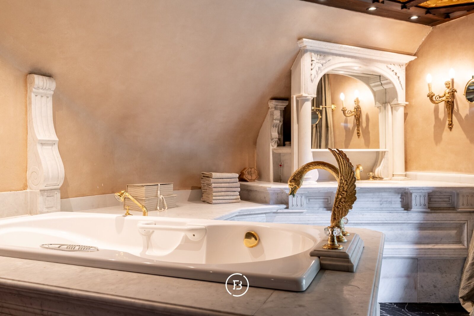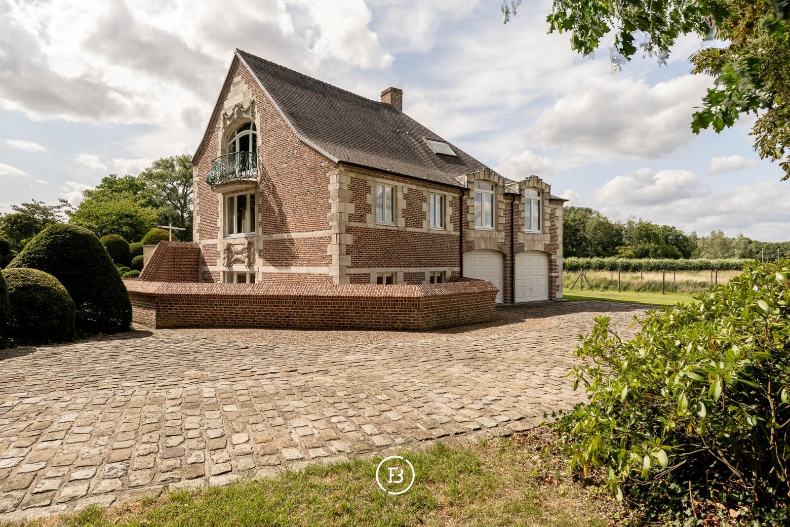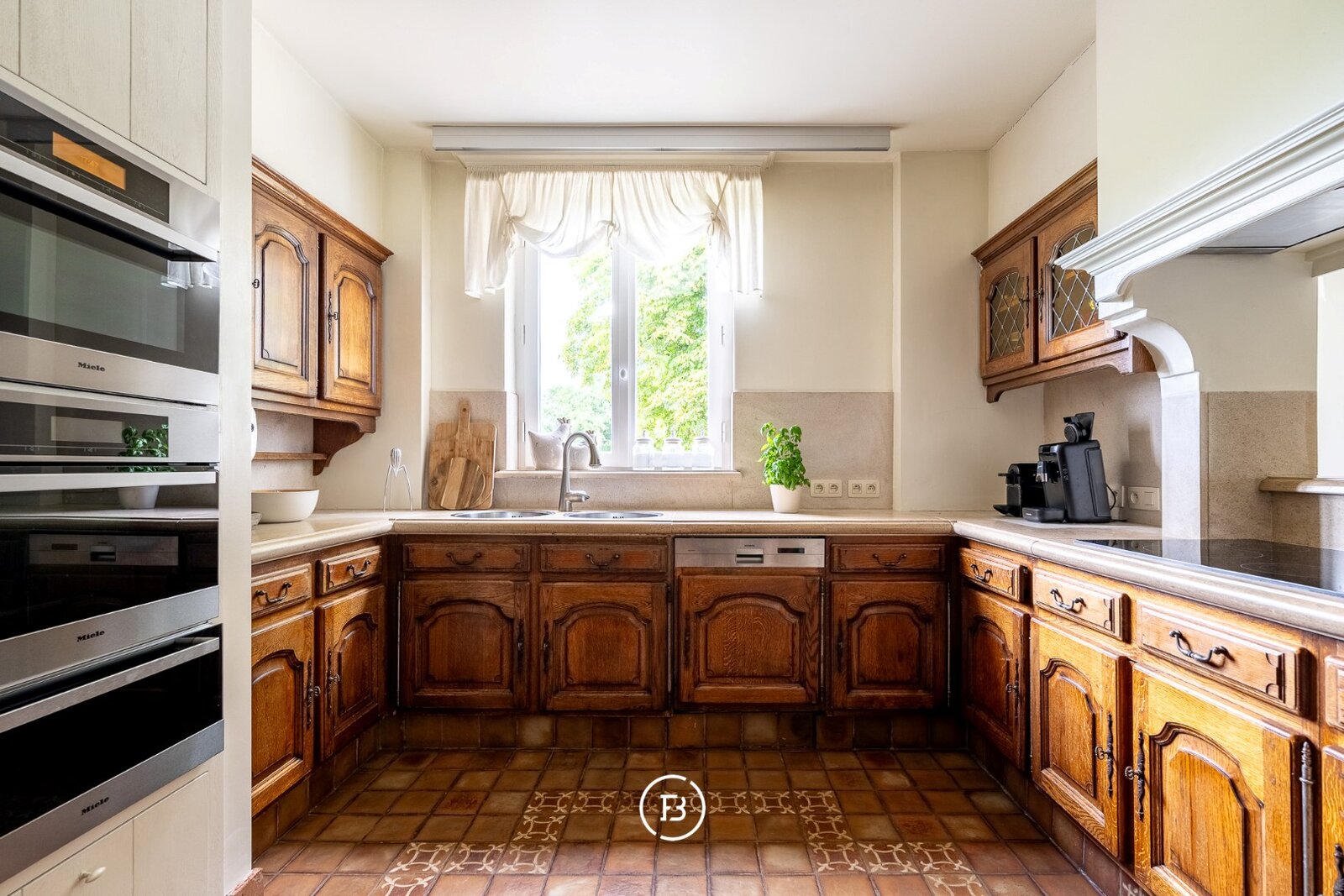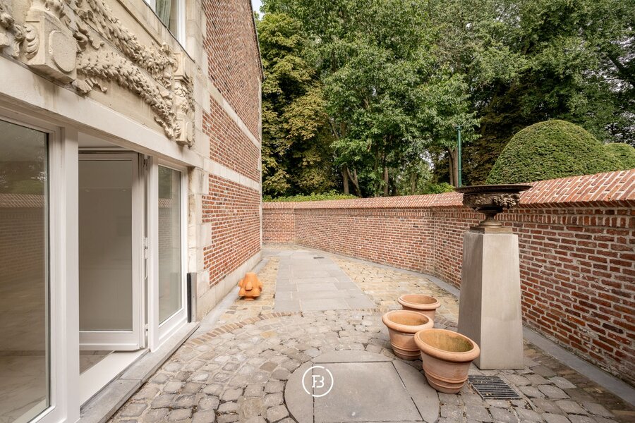 De woning omvat drie niveaus met vier slaapkamers, vier badkamers, twee keukens en twee bureaus. Dankzij de aparte toegangen is ze ook perfect geschikt als kangoeroewoning of voor een vrij beroep. Buiten tref je een indrukwekkende gietijzeren fontein uit Parijs, een verzorgde tuin en een bosgedeelte dat voor volledige privacy zorgt.