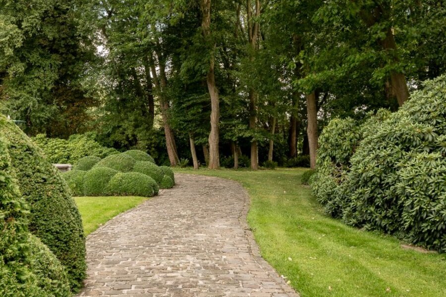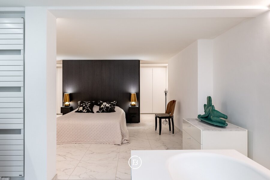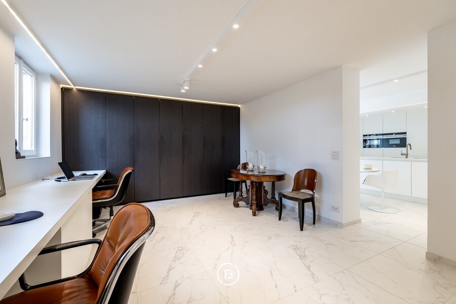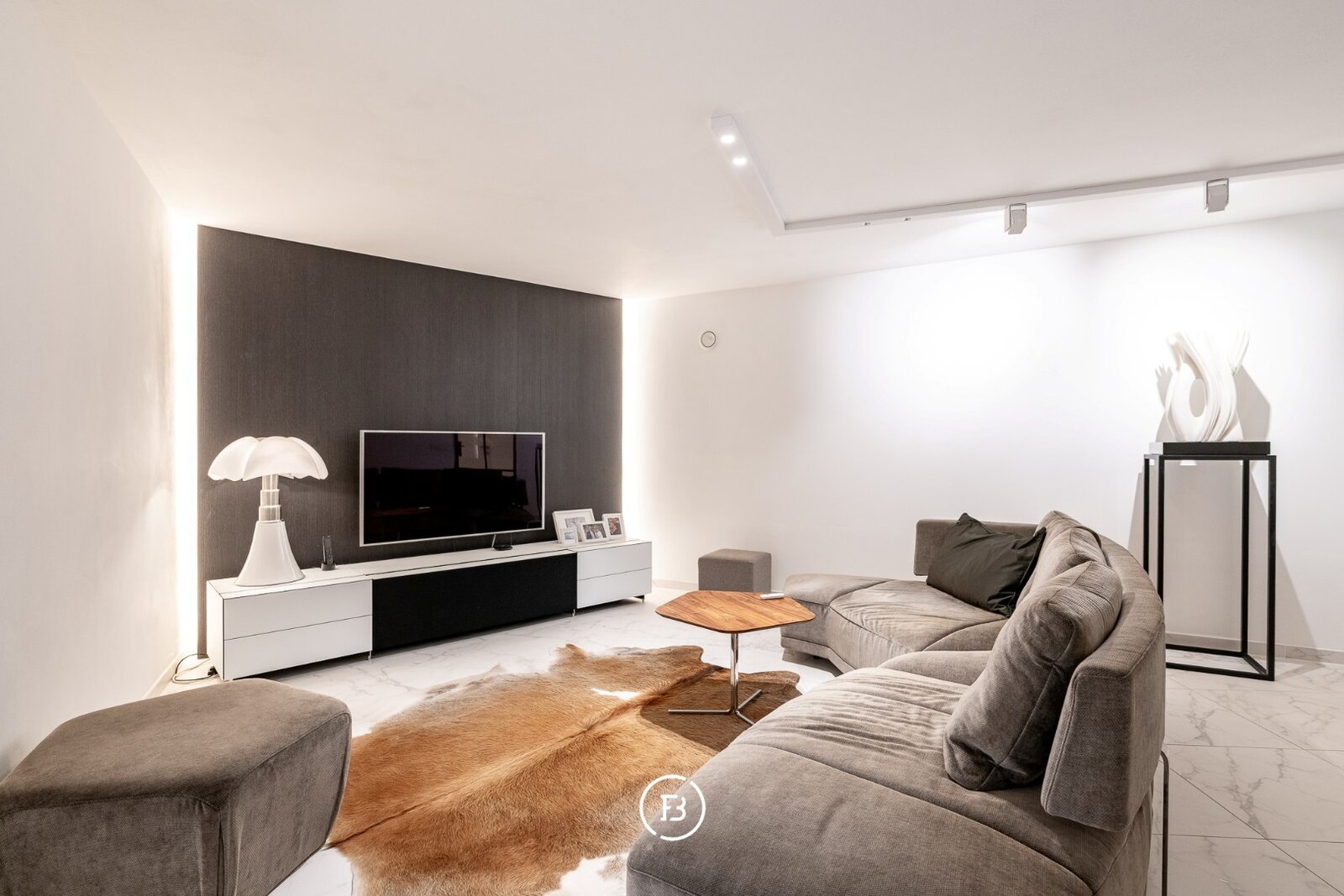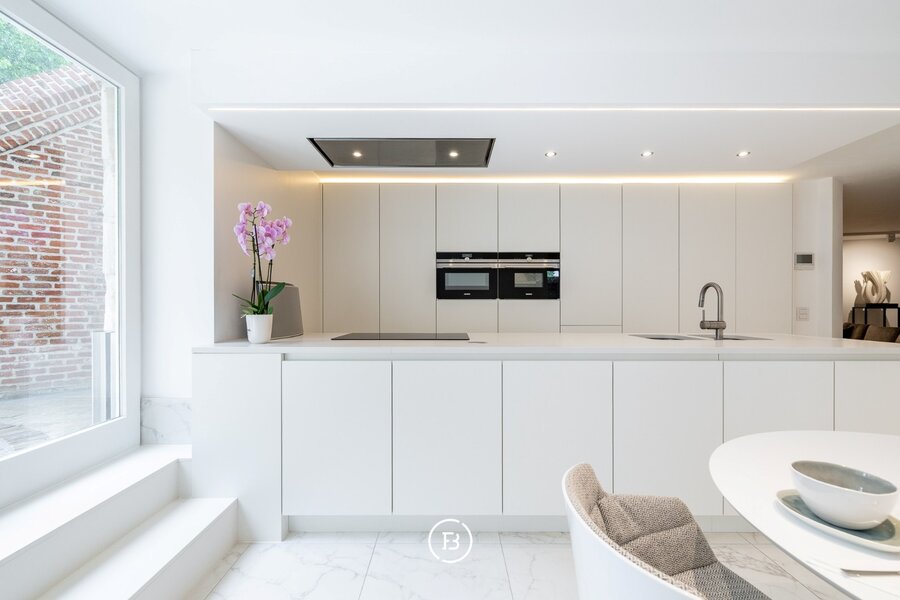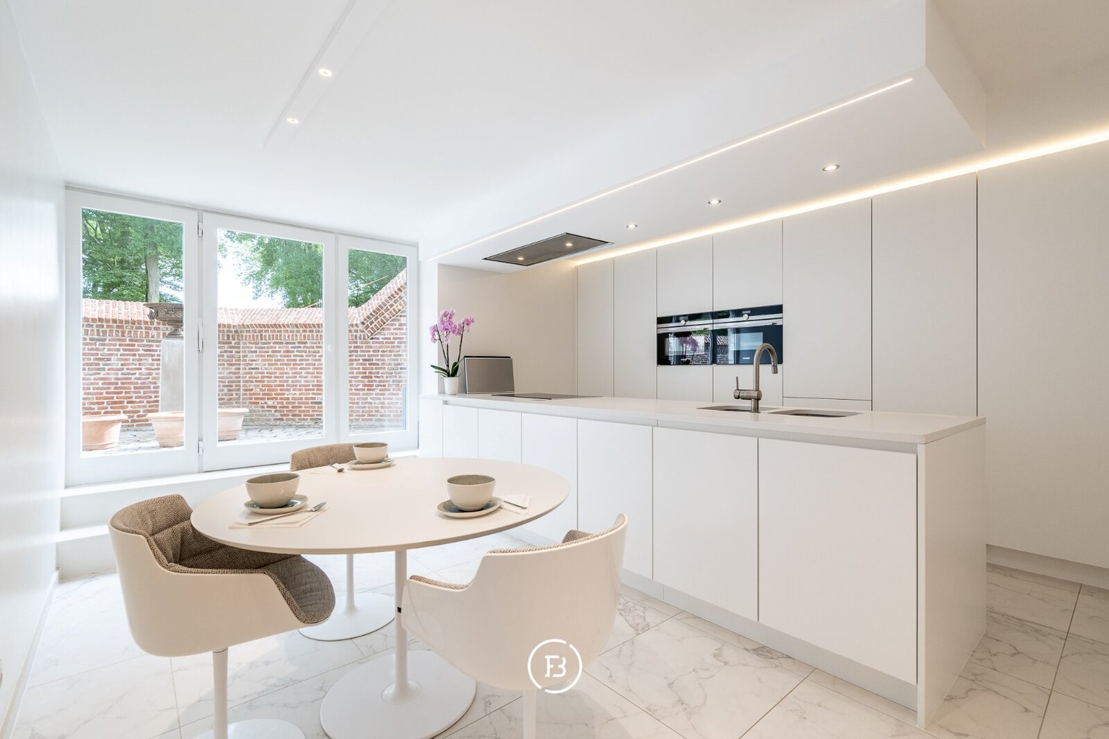 De woning omvat drie niveaus met vier slaapkamers, vier badkamers, twee keukens en twee bureaus. Dankzij de aparte toegangen is ze ook perfect geschikt als kangoeroewoning of voor een vrij beroep. Buiten tref je een indrukwekkende gietijzeren fontein uit Parijs, een verzorgde tuin en een bosgedeelte dat voor volledige privacy zorgt.
