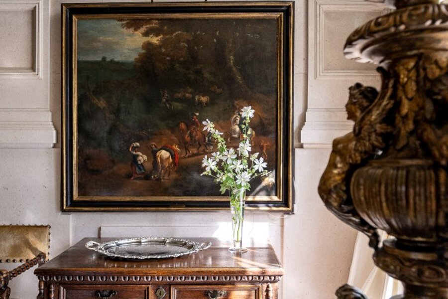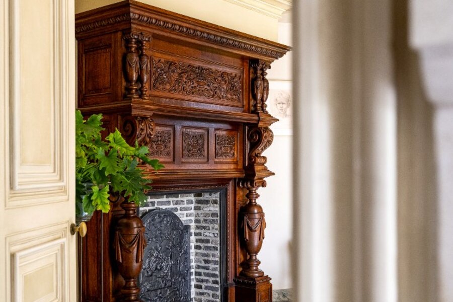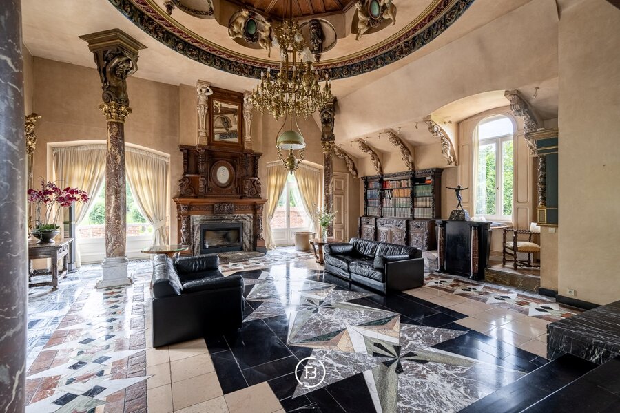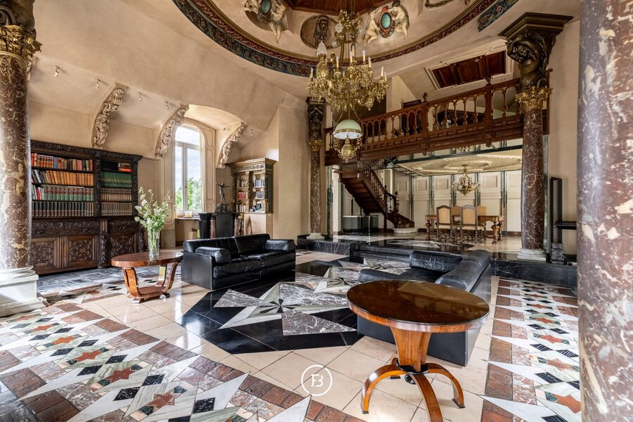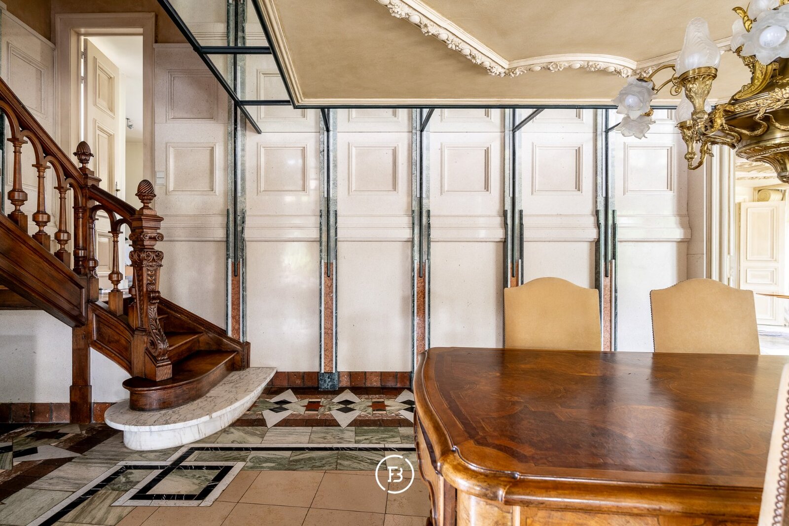 Binnen wordt je verwelkomd door marmeren vloermozaïeken, elegante muurbekleding en een houten trap afkomstig uit het Zwitserse vakantiehuis van Gustave Eiffel. Authentieke materialen worden naadloos gecombineerd met modern comfort zoals vloerverwarming en een energiezuinig EPC-label B.