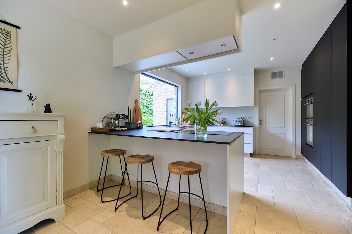 Het huis werd opgericht in 1996 en heeft later een omvangrijke uitbreiding ondergaan die naadloos opgaat in de architectuur. Door de keuken uit te bouwen tot een grote sfeervolle leefkeuken (vernieuwd in 2019) met een optimalisatie van de tuin- en buitenbeleving als gevolg, werd heel wat extra ruimte gecreëerd, geschikt voor een groot gezin. Ook de energiezuinigheid werd nog meer verbeterd door condenserende centrale verwarming (aardgas) en het aanbrengen van zonnepanelen.