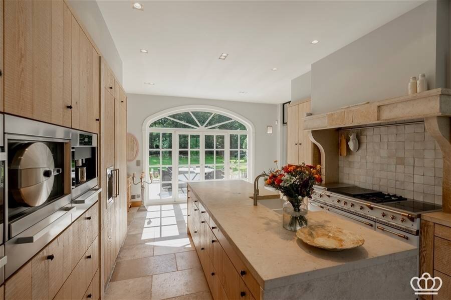 Luxurious recent villa on a fully south facing interior plot of 7,827 m2 with pool and oak pool house. The villa includes 6 bedrooms, 4 bathrooms, 2 saunas, 2 offices, garage, basement and is equipped with an elevator.