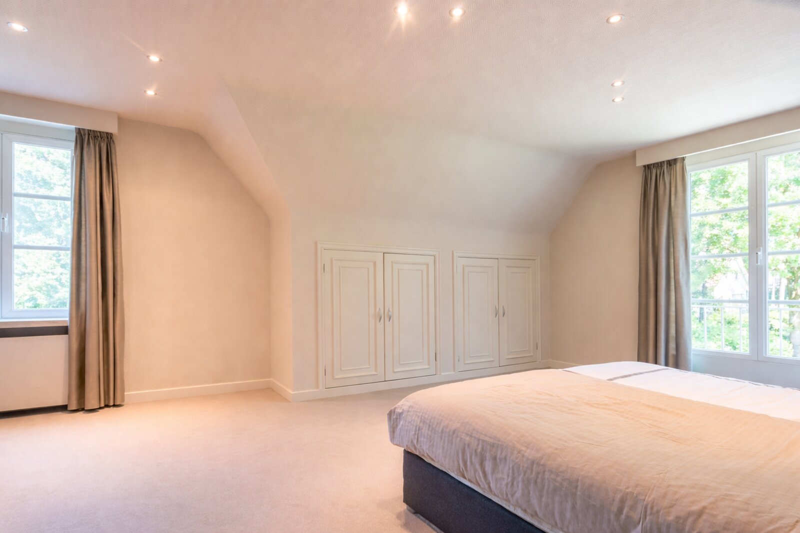 - Een derde, vierde en vijfde slaapkamer (ca. 29, 14 en 21 m²) op vast tapijt met ingemaakte kasten