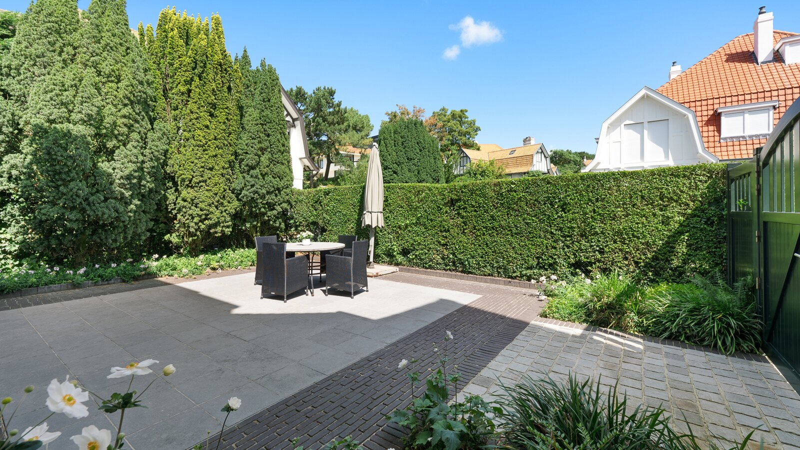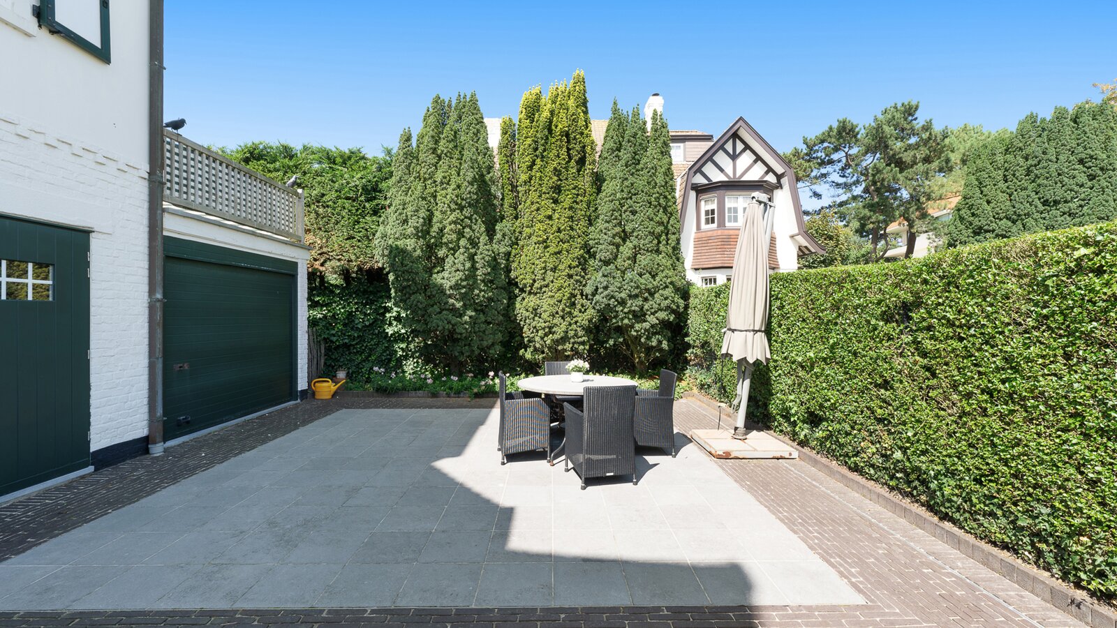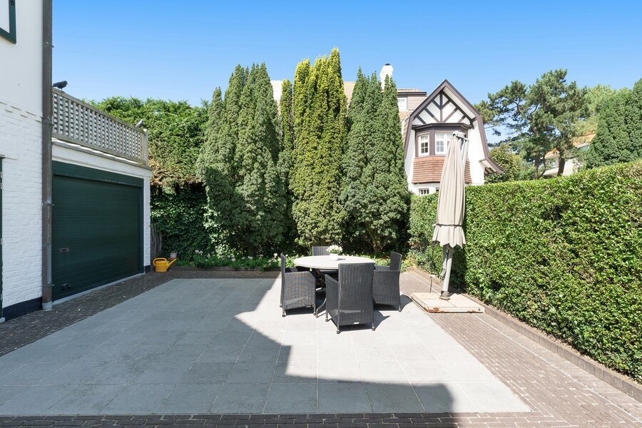 The property also includes a second garage with laundry area, a pleasant terrace, and several outdoor parking spaces in front of the villa — a highly valuable feature in Het Zoute.