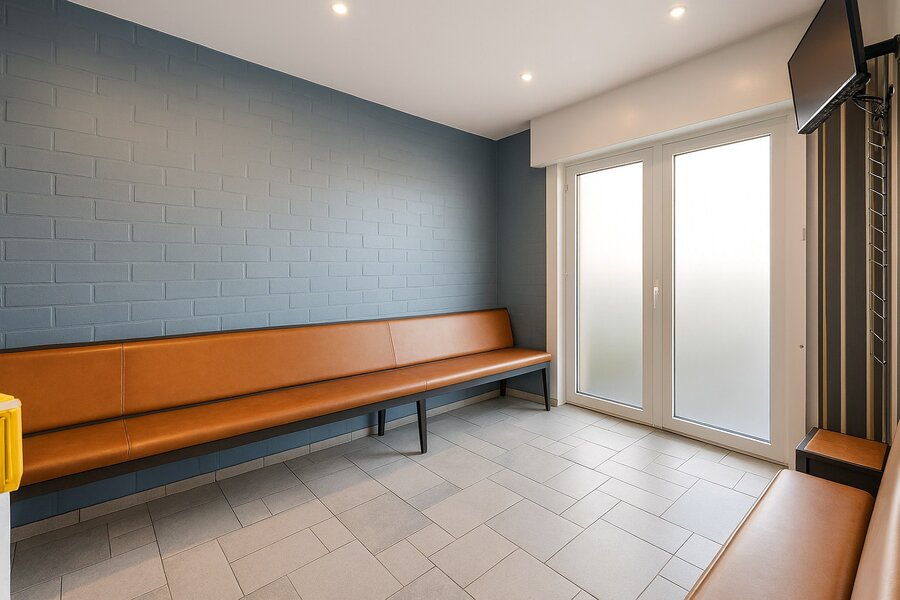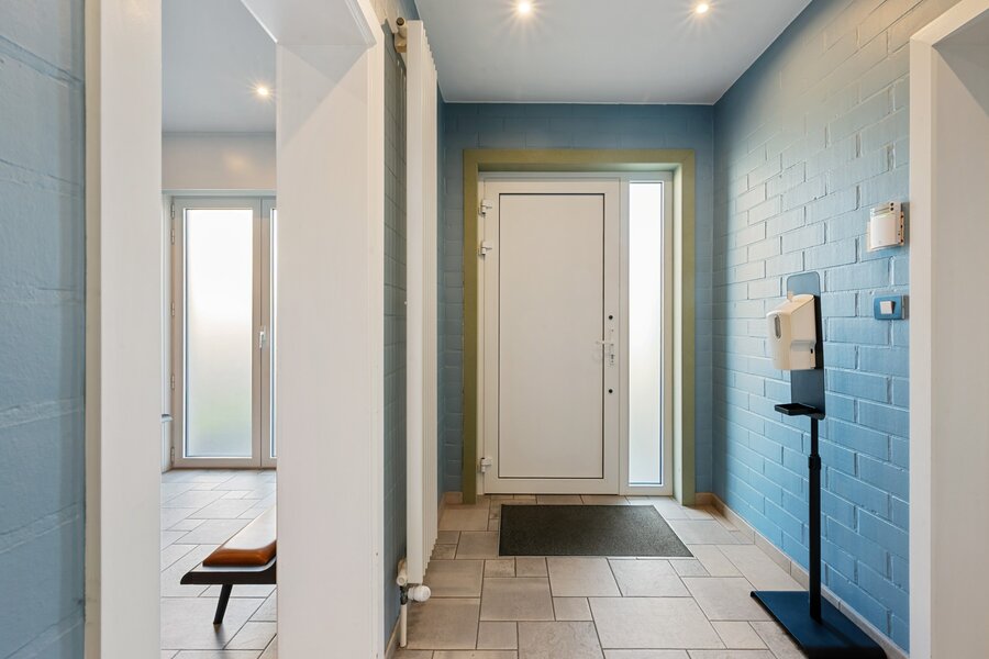 Via een gang bereik je de praktijkruimte, bestaande uit wachtzaal, kabinet, keukentje en apart toilet, met een eigen zij‑ingang die volledige scheiding tussen werk en privé mogelijk maakt.