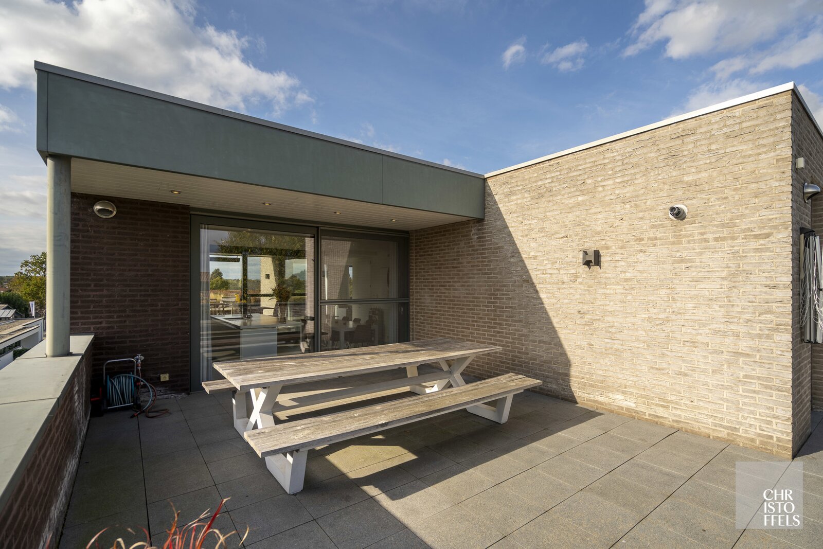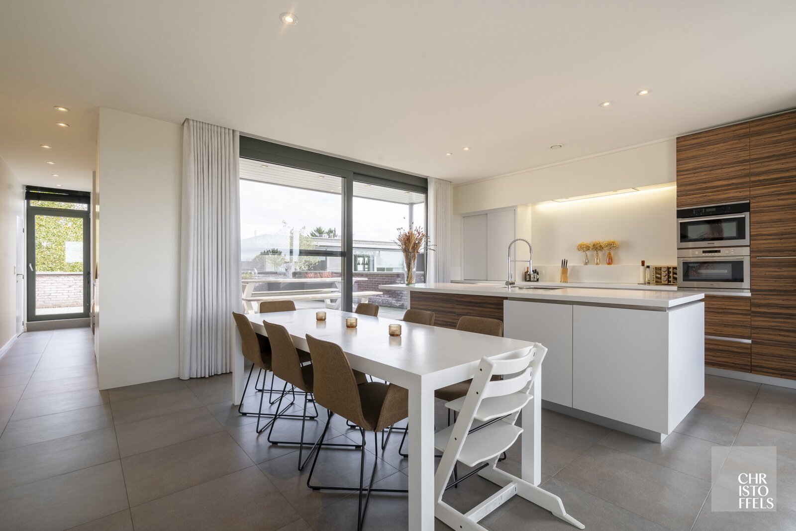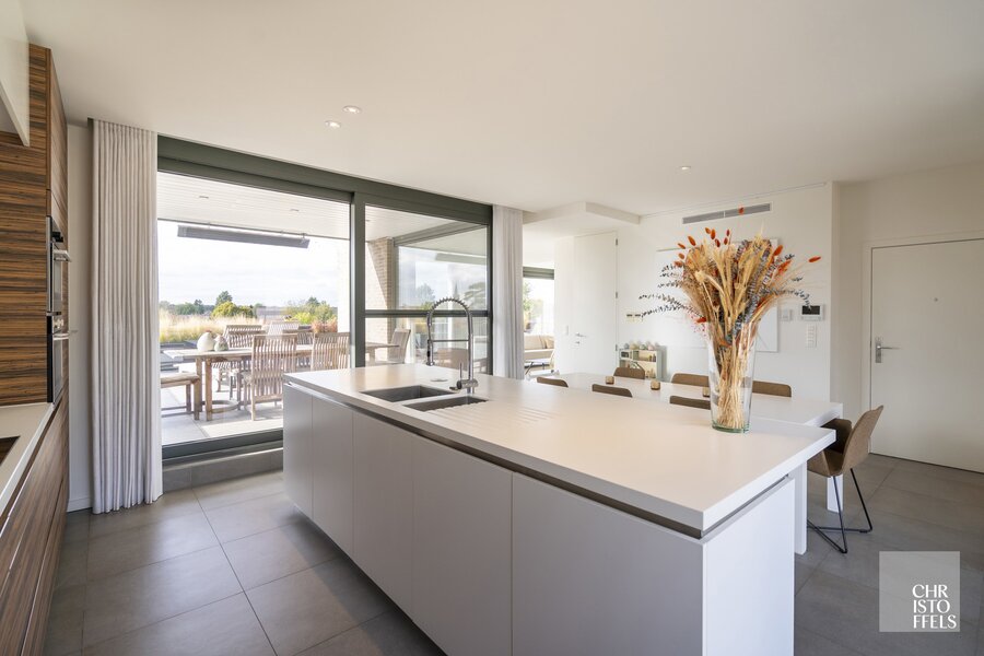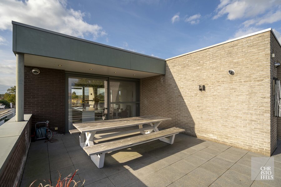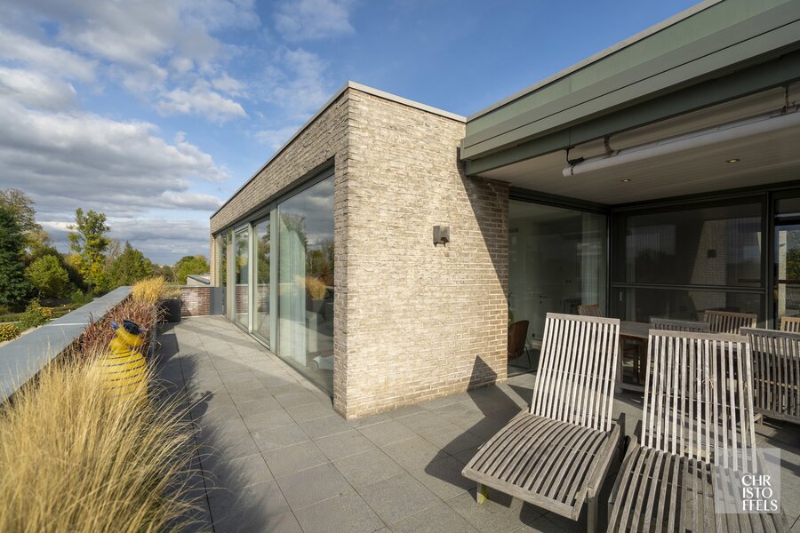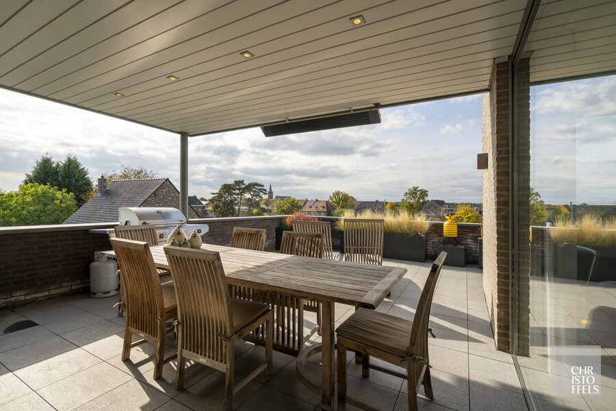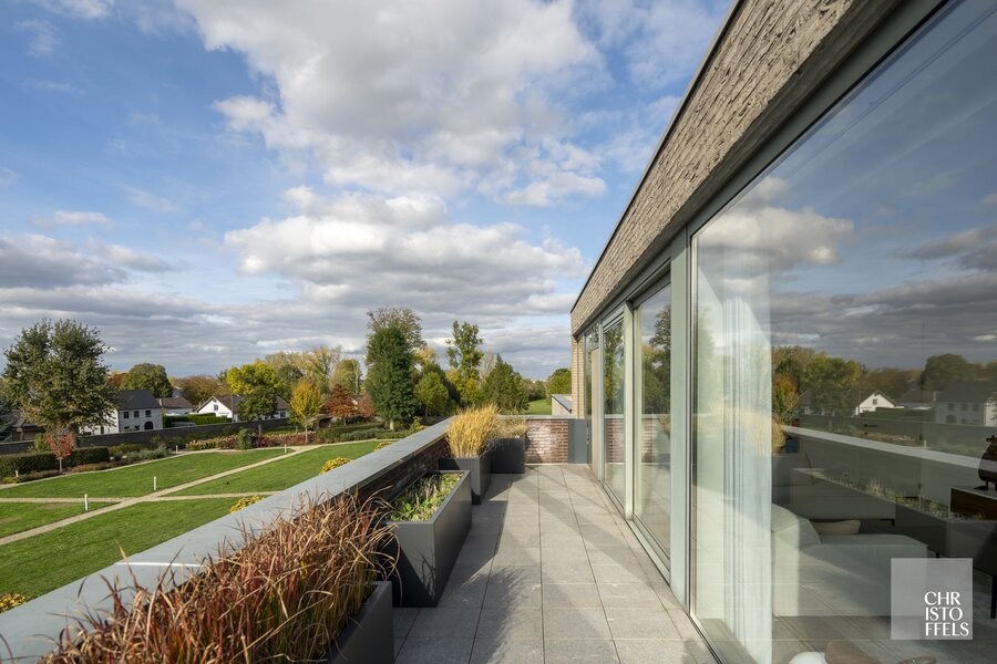 Nestled in the heart of greenery, in the serene park residence of Oud-Rekem (Lanaken), lies this exceptional luxury penthouse of 126 m² with 96 m² of terraces, partly covered and equipped with terrace heating. The property stands out with its floor-to-ceiling glass façades, allowing an abundance of natural light to enter and creating a seamless connection between indoor and outdoor living.