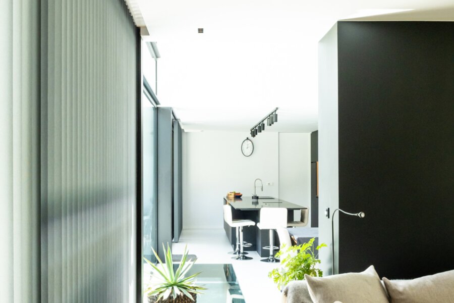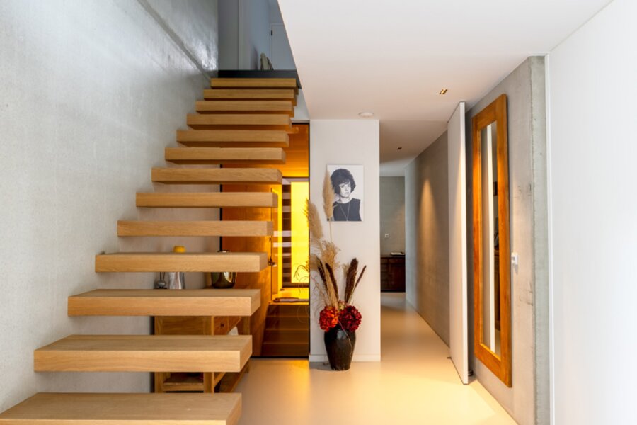 Overal vloerverwarming en koeling, zonnepanelen, zonneboiler, PU-vloeren en parket, aluminium ramen, vliegenhorren, pivoterende en hoge deuren, Loxone domotica, ventilatiesysteem D, warmtepomp, regenwaterput (10.000 l), geboorde put (12 m), automatische toegangspoort, alarm, camerabewaking, elektriciteit conform, EPC-label A – E-peil 15 UC 9953/EP16989. Wg-Vg-Gvv-Gmo-Gvkr-Gworg.