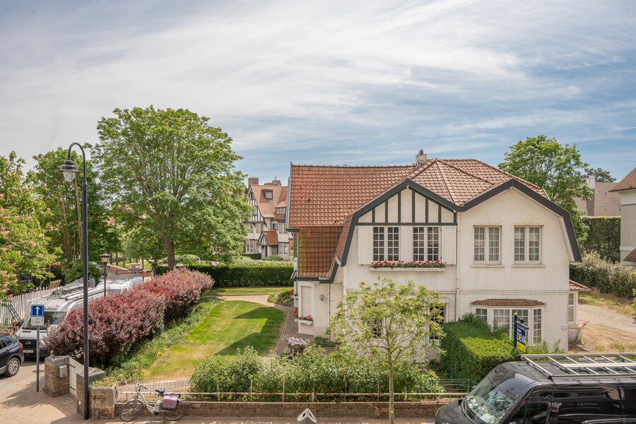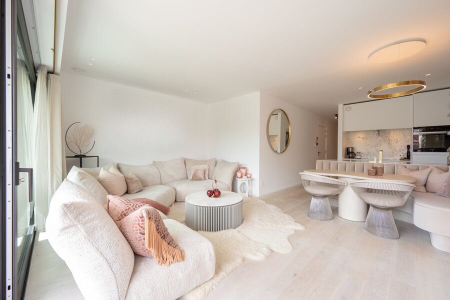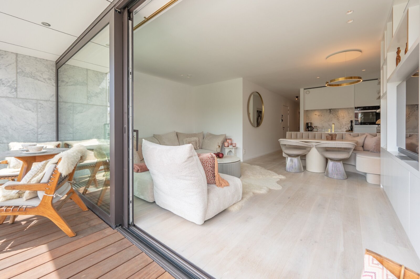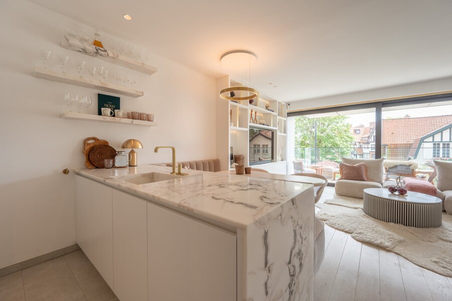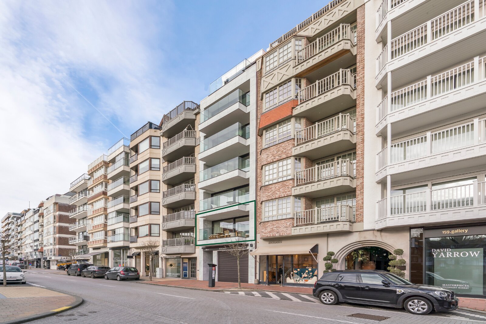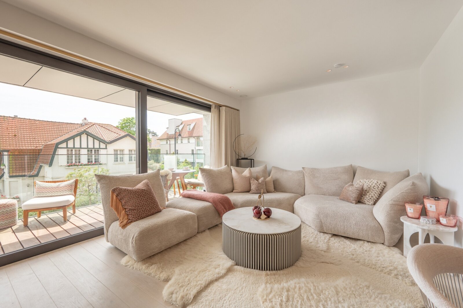 Top finished new construction apartment (sale under registration duties) with 2 bedrooms and spacious south facing terrace with open view on the green, located in the prestigious residence "Pogany" on the Kustlaan in the Zoute.