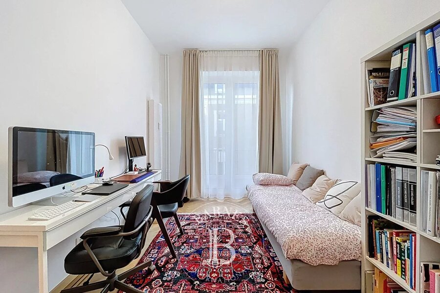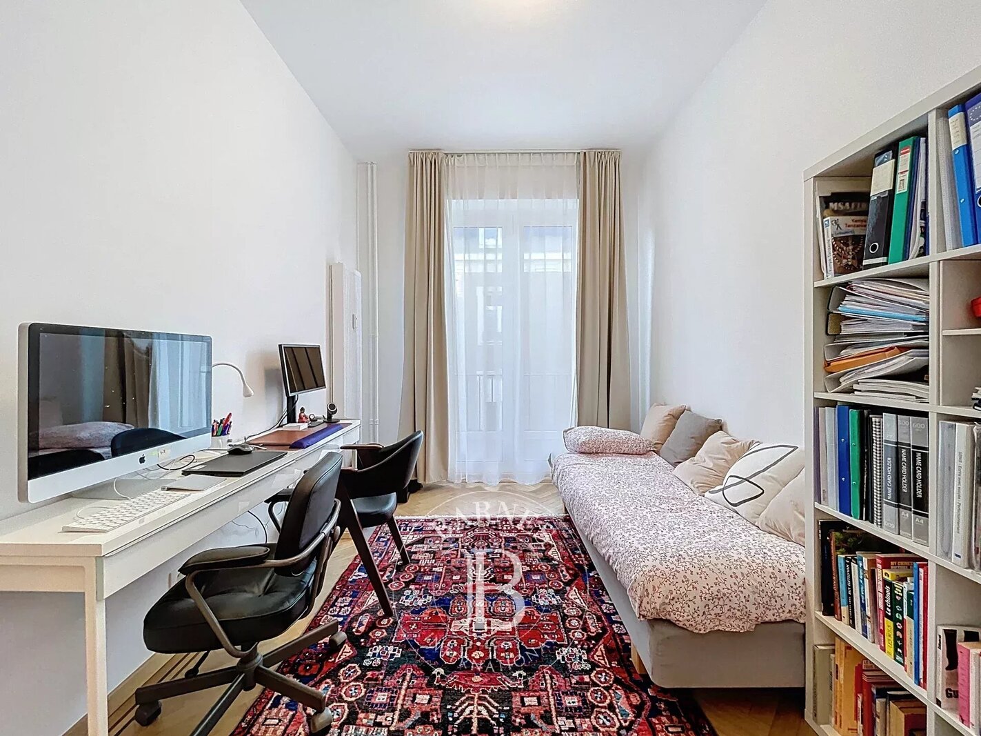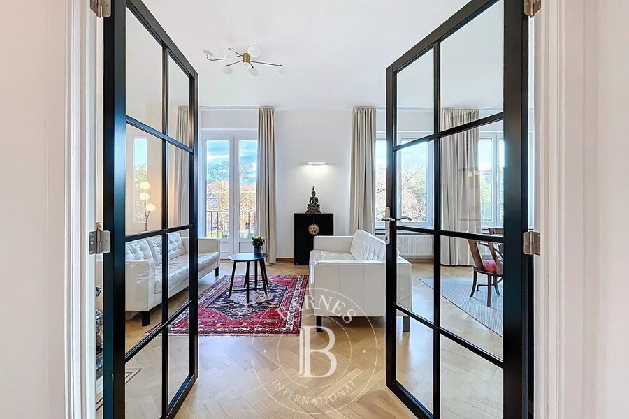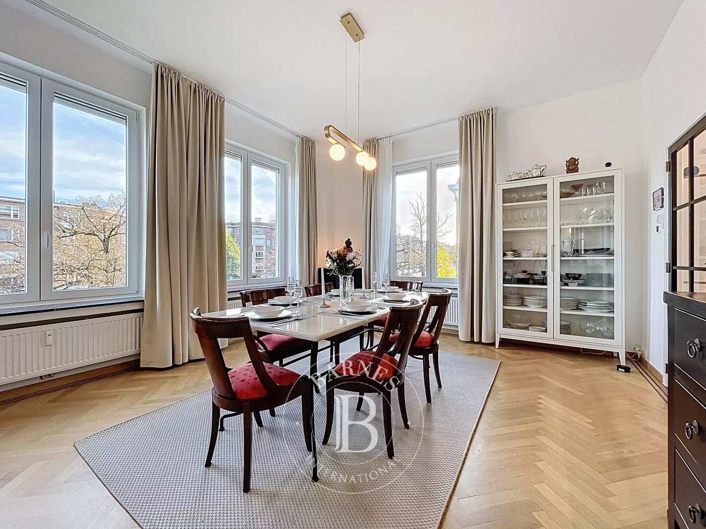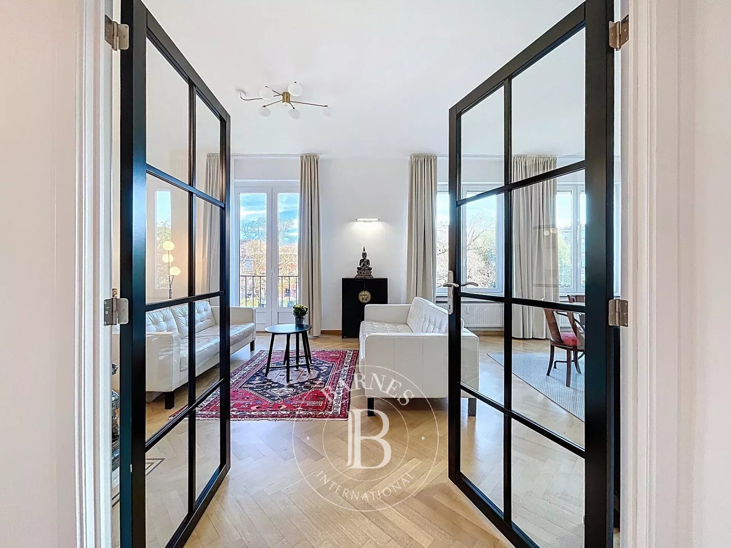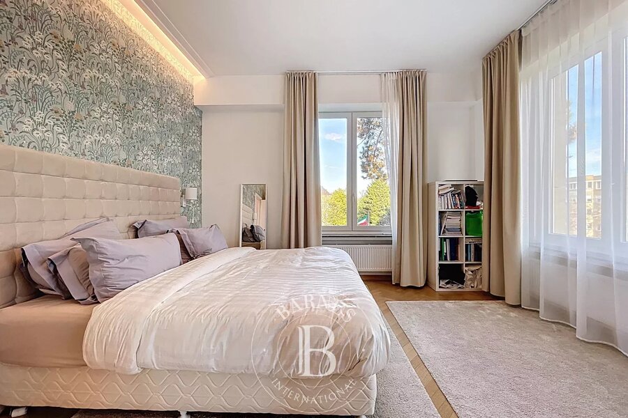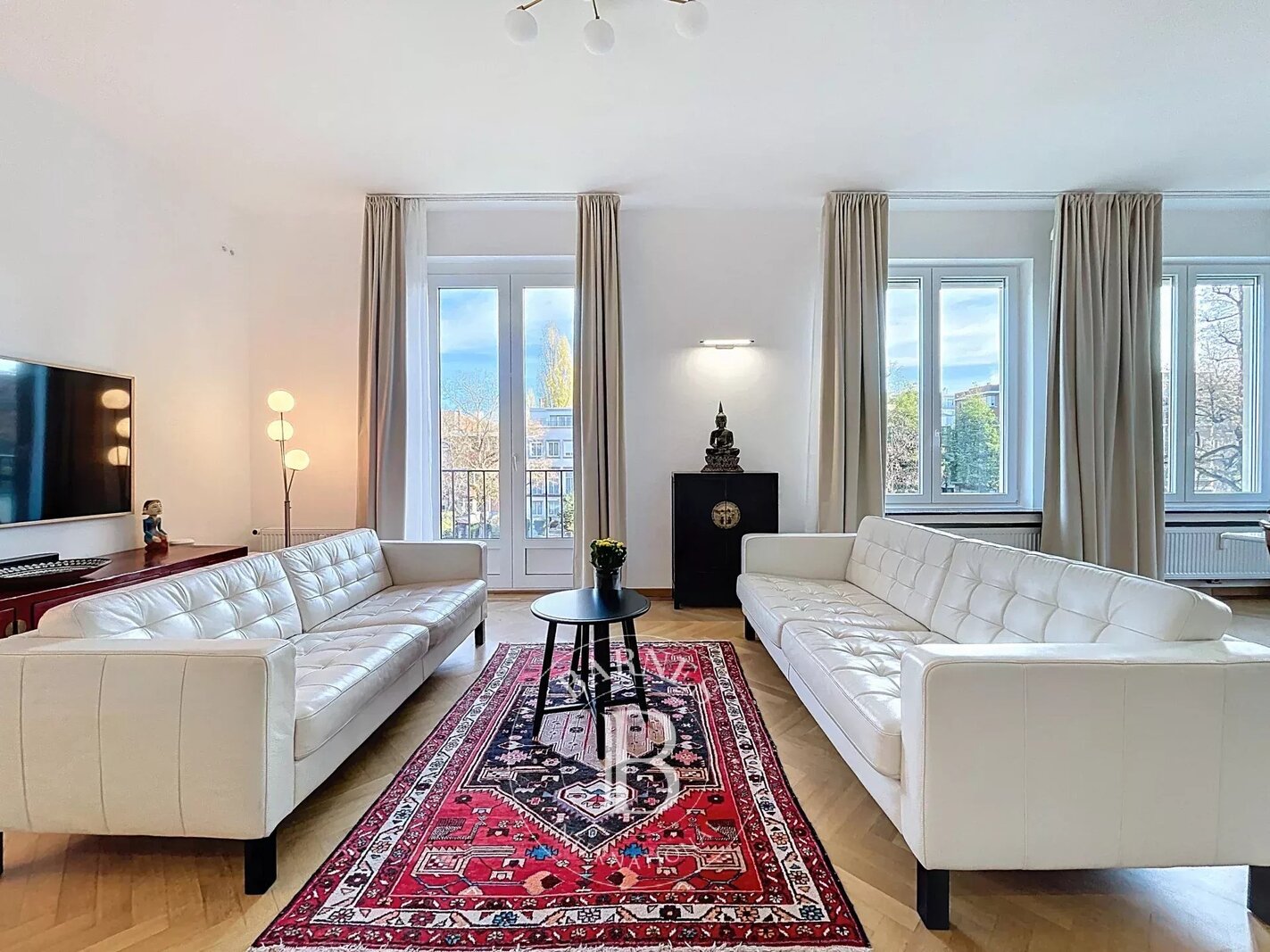 Barnes offers you a superb 141 m² 3-facade apartment, completely renovated in 2024, located on the second floor of a luxury building. It comprises a marble-floored entrance hall, a ±41 m² living and dining room with solid oak parquet laid in Hungarian style, including a living room with open fire and a dining room adjoining a fully equipped independent kitchen with central island and American fridge. The sleeping area offers three bedrooms with parquet floors (12 m², 14 m² and 22 m²), a bathroom, a shower room, a guest toilet and a laundry room. A cellar completes the property. A lock-up garage is available as an option at a price of €30,000, as is a maid's room measuring ±10 m² at a price of €20,000. PEB D-. Technical aspects: acoustic frames, radiators, electricity, kitchen, sanitary facilities, armored door, RJ45 cabling. Monthly charges: ±400 € (heating, hot and cold water, syndic, garden and common maintenance, insurance, etc.) plus ±100 € for the reserve fund.