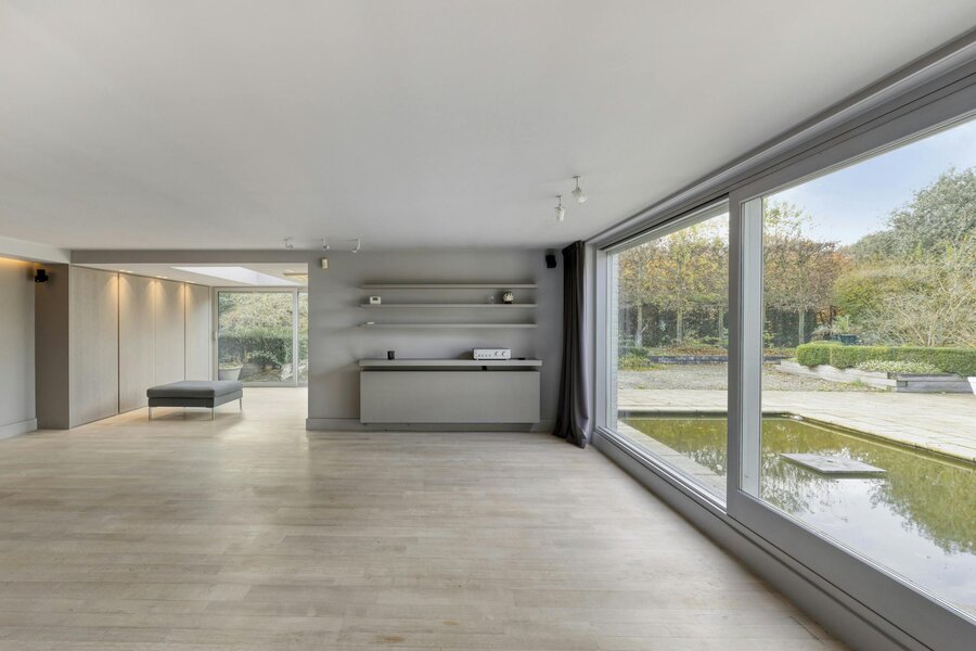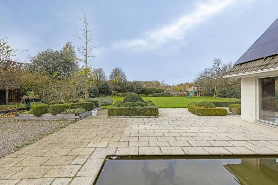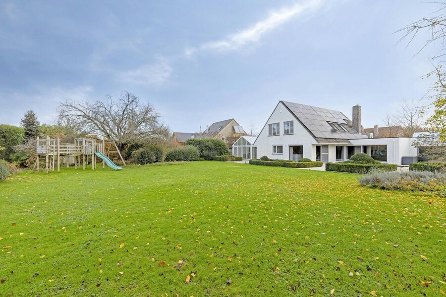 A stone's throw from the Lozerbos in Kruisem, we find this stylish villa in a quiet location. The villa dates back to 1990 and is located on an extremely spacious plot of no less than 2,000 m² with a southwest orientation. During the construction of this villa, a lot of attention was paid to finishing with high-quality materials, large windows for lots of light and a nice blend between nature and life.
