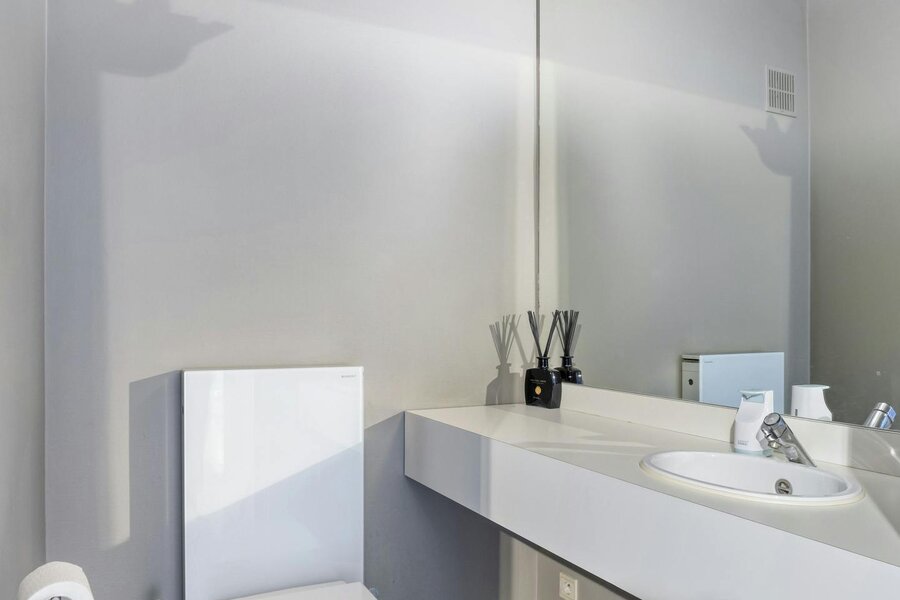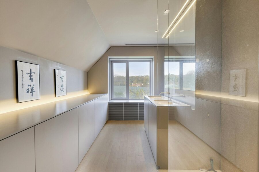 On the first floor, we find 2 bedrooms, both with an en-suite bathroom with walk-in shower and dressing. In addition to the house, we also find a garden house that can be used as a hobby room; in the garden, we also find a pond and an extra garden house.