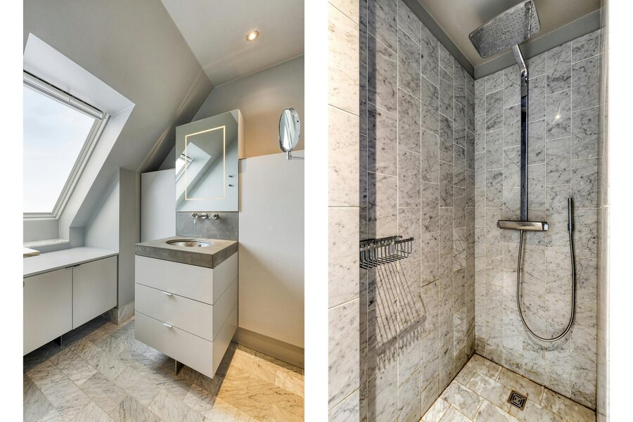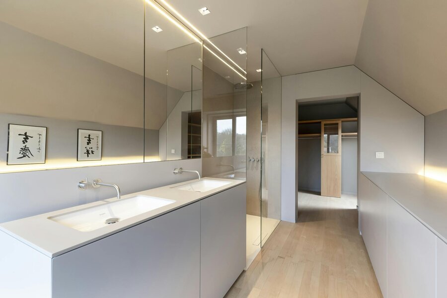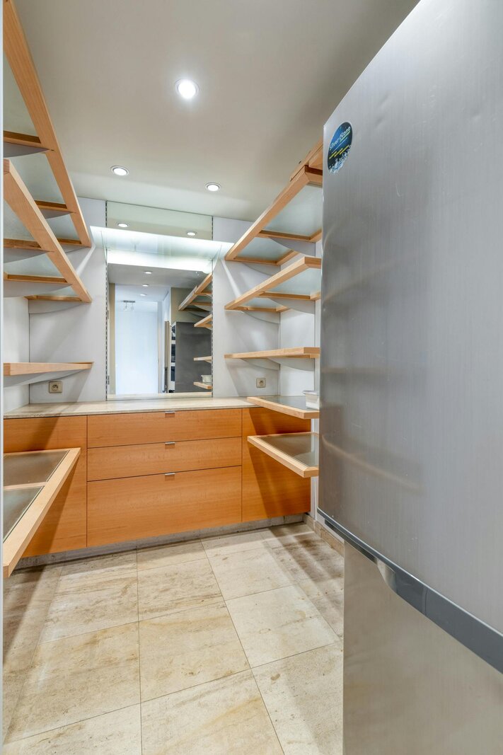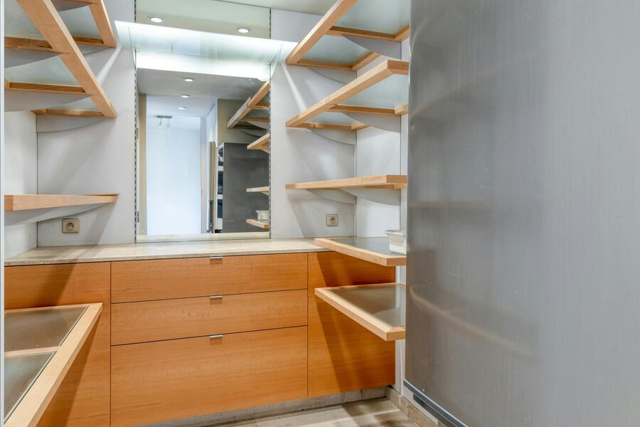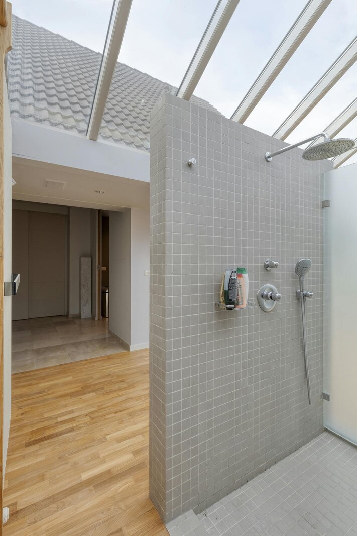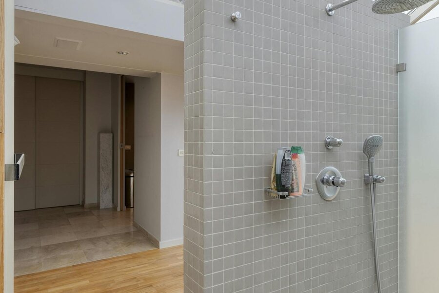 You enter the house into the entrance hall with a guest toilet and cloakroom, and there is also a direct entrance to the office space. On the ground floor, you will find the extremely spacious dining room and living area with lots of light and a built-in gas fireplace. The kitchen was also equipped with all necessary equipment, after which you can also walk to the spacious storage room, gym with jacuzzi, sauna and shower room.