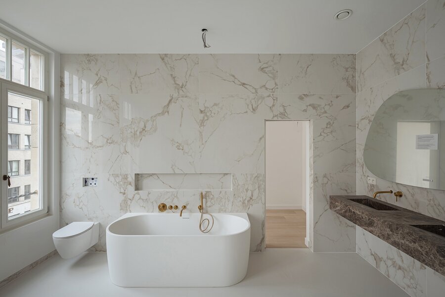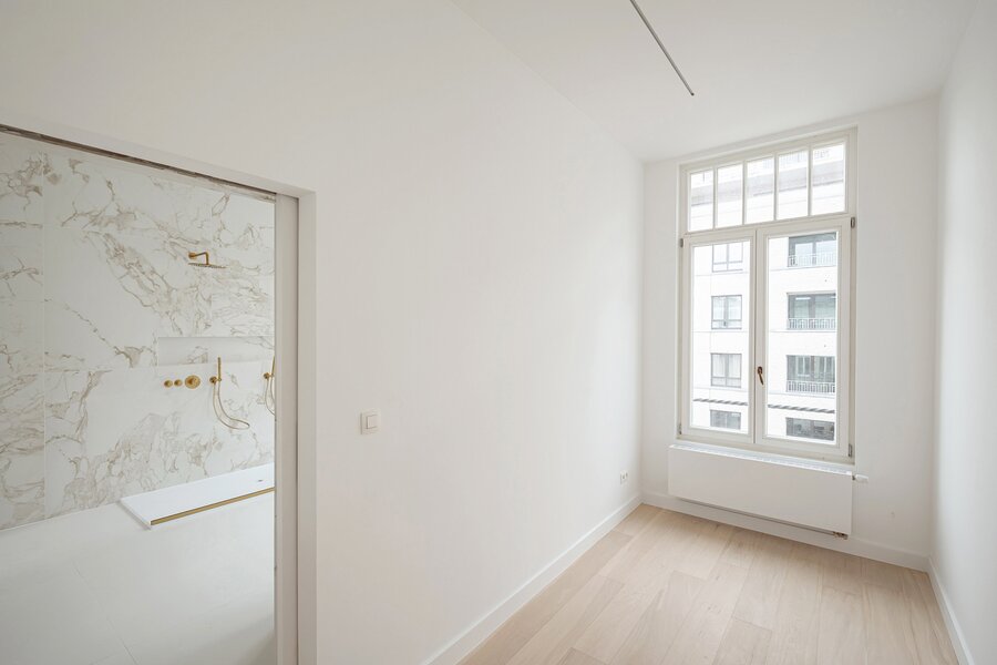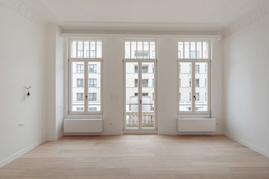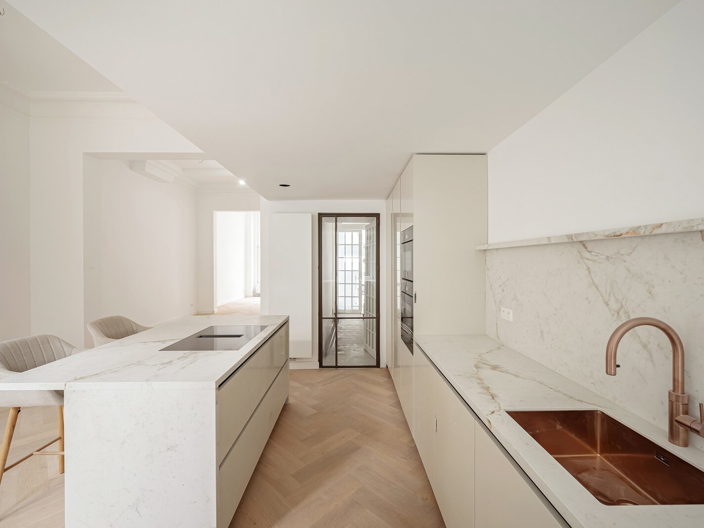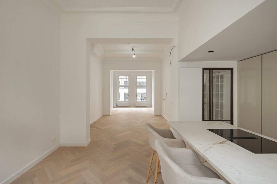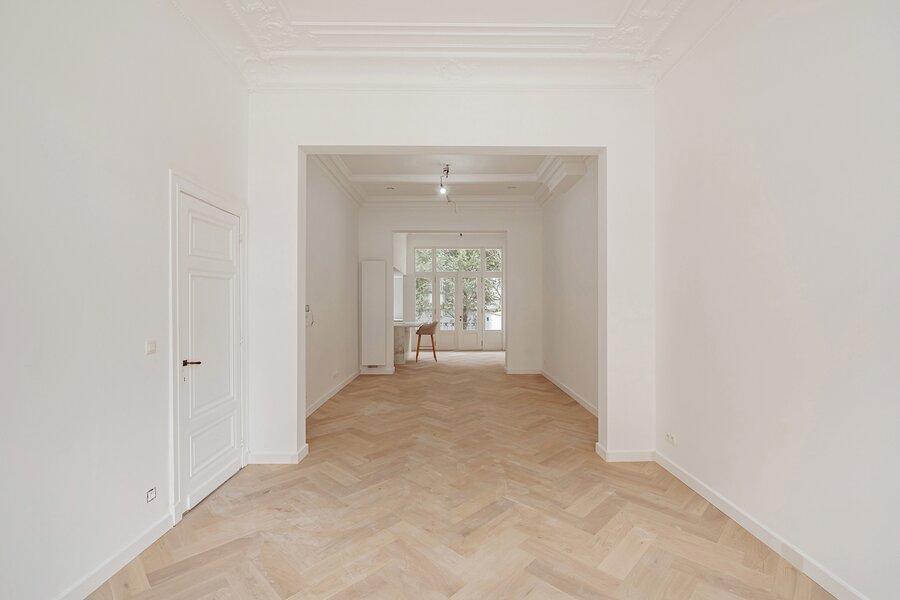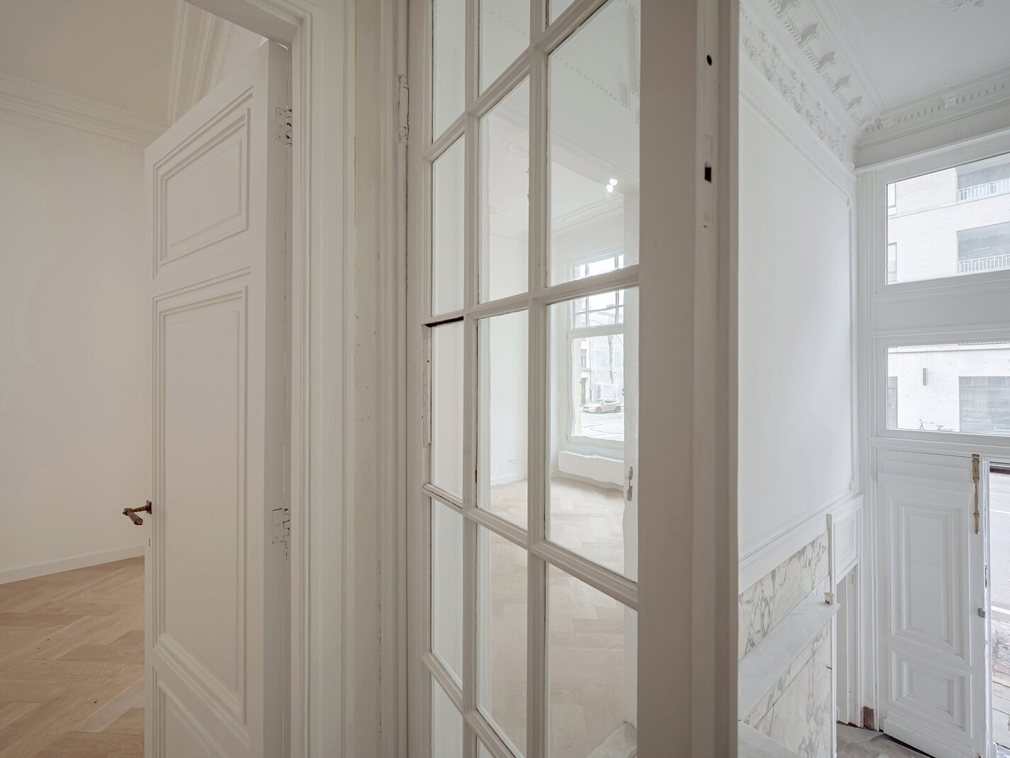 Located within walking distance of King Albert Park, this renovated character property combines the authentic cachet of an early 20th-century town house with subtle yet distinct contemporary class and comfort. Designed in 1909 by architect Adolphe Van Coppernolle in an eclectic style with neoclassical influences, the property has been completely renovated with great respect for its original grandeur, seamlessly combining historical details and modern finishes.