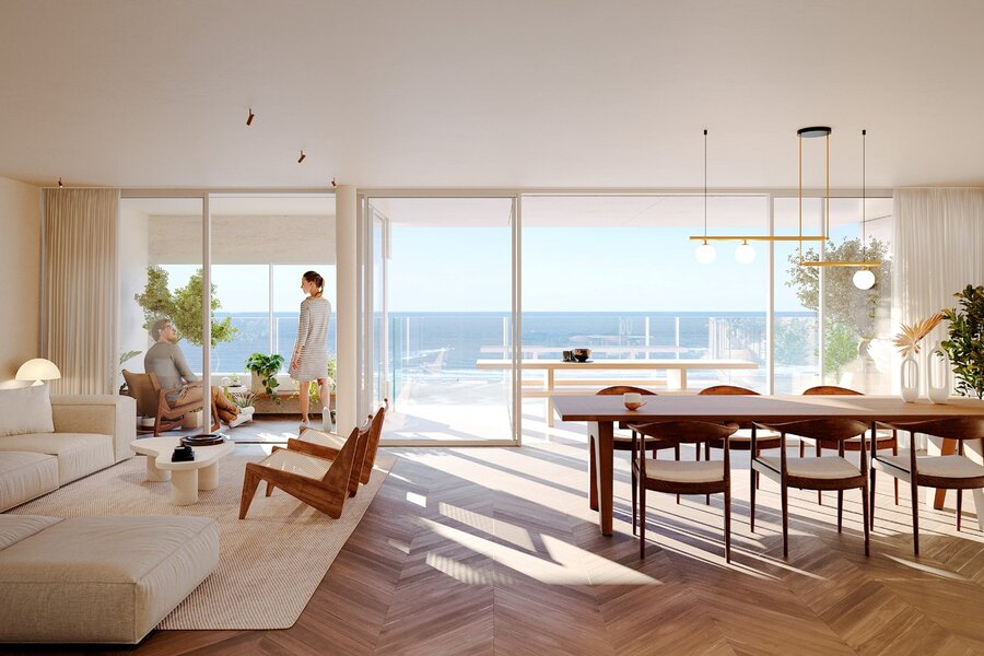 Met een bewoonbare oppervlakte van 136,27 m² beschikt het appartement over drie slaapkamers en een ruime leefruimte die volledig is gericht op het zeezicht. De brede gevel van meer dan negen meter zorgt voor een open en panoramisch zicht op de Noordzee, dat vanuit de leefruimte voortdurend aanwezig blijft.