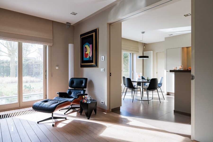 Een instapklare, tijdloze villa op een uitzonderlijke ligging in Drongen, waar wonen aan de rand van de natuur wordt gecombineerd met comfort, privacy en kwaliteit.