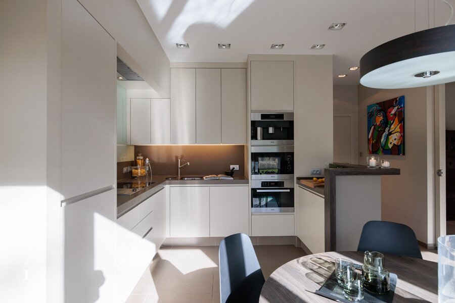 De woning werd in 2009 volledig gerenoveerd en is sindsdien met de grootste zorg onderhouden. Dankzij de aangename plafondhoogte van ca. 2,80 m op het gelijkvloers, de grote raampartijen en de ideale zuidwest oriëntatie geniet men hier van overvloedig natuurlijk licht en een open, warme woonbeleving.