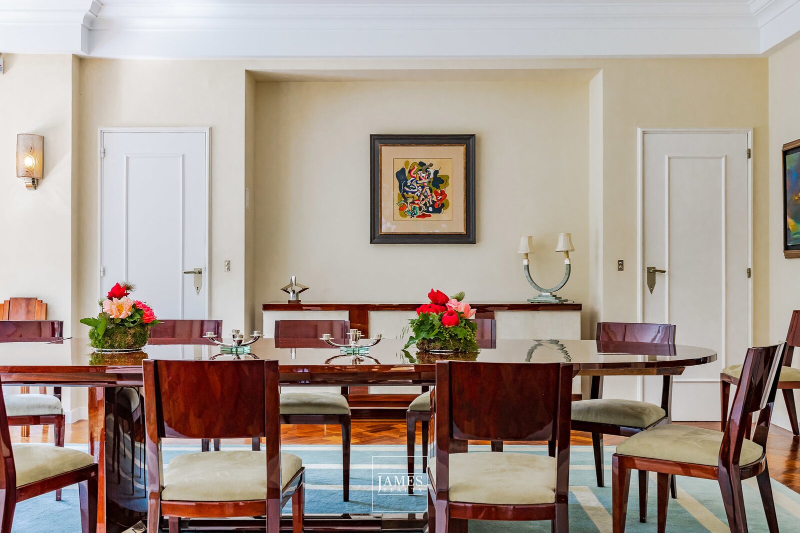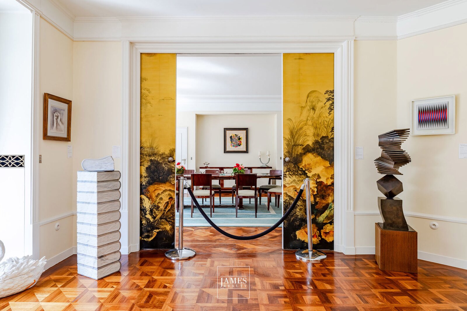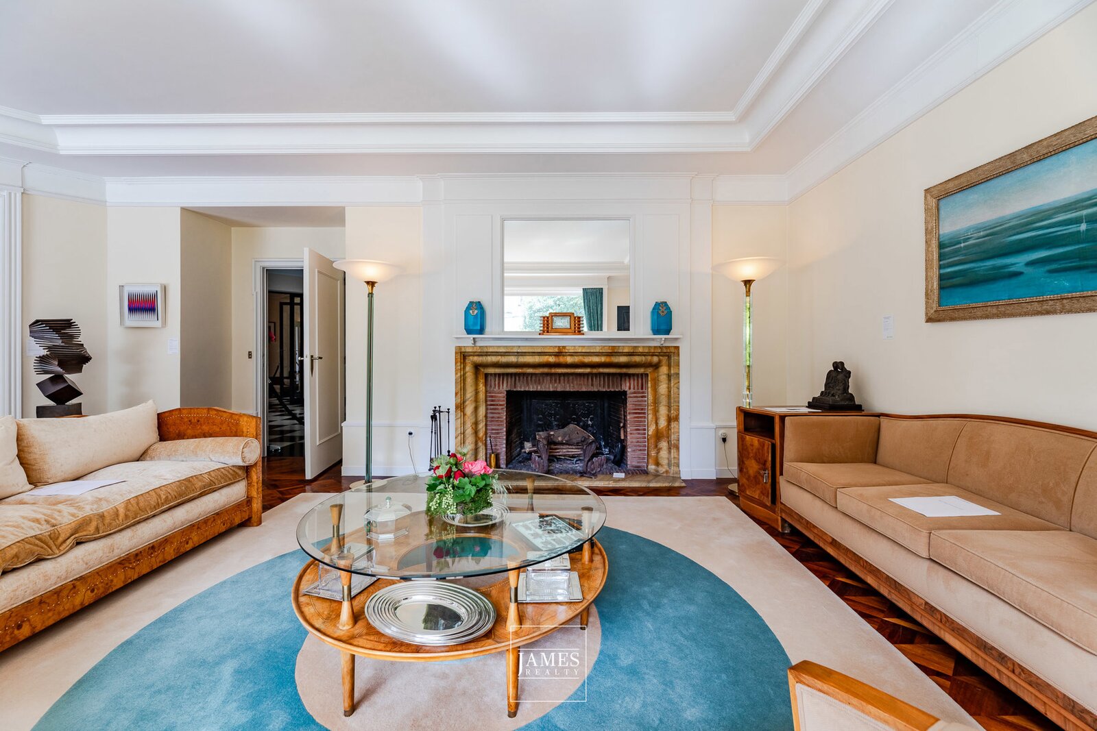 All original features have been carefully conserved: custom-designed exotic wood floors, handcrafted fireplaces, wrought ironwork, original joinery, and a spectacular central staircase flooded with light.