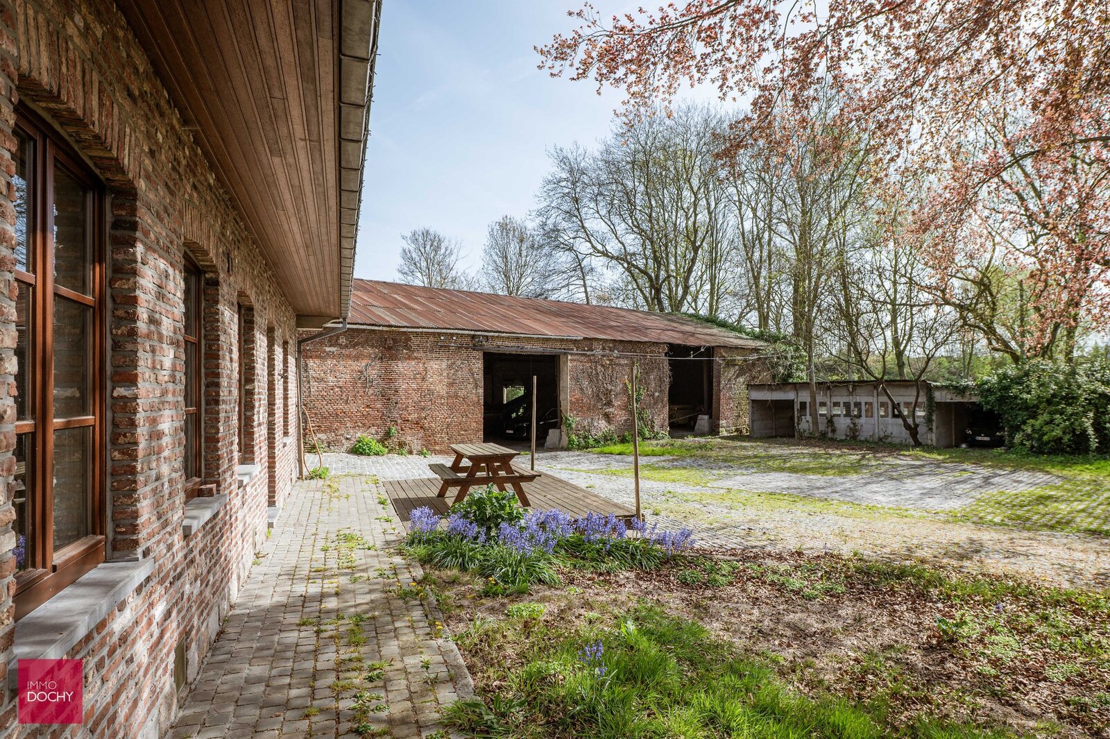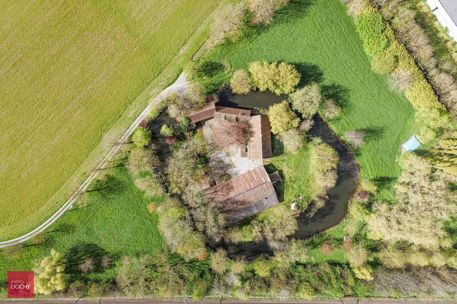 Historische omwalde hoeve met verschillende bijgebouwen