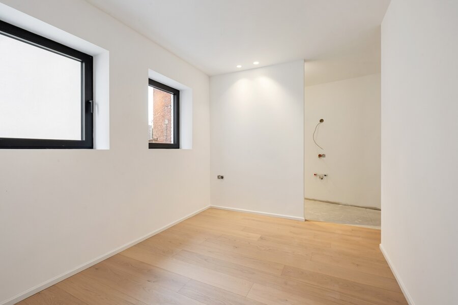De lichtrijke leefruimte wordt gekenmerkt door een grote glaspartij die zorgt voor een maximale natuurlijke lichtinval. Aansluitend vind je een royaal inpandig terras, waardoor je het hele jaar door kan genieten van een aangename buitenruimte.