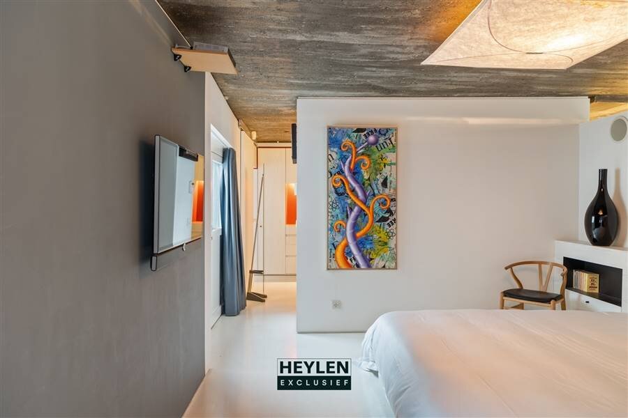 Via de lift komt U binnen in een royale inkomhal. Het open leefgedeelte straalt karakter en authenticiteit uit dankzij de industriële accenten in muren en Japanse vloeren.