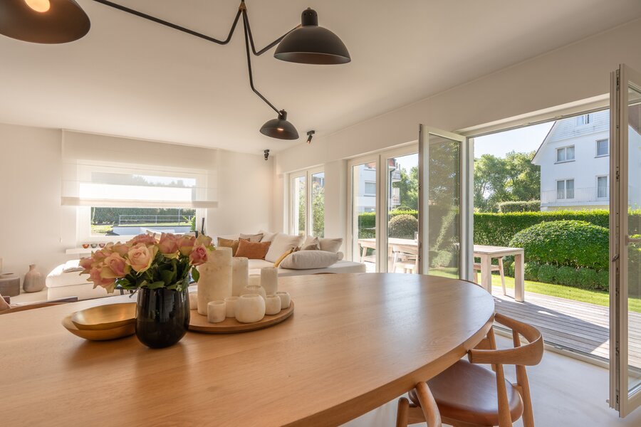 This luxurious garden apartment offers a perfect combination of tranquility, comfort, and style, in an exceptional location in het Zoute.